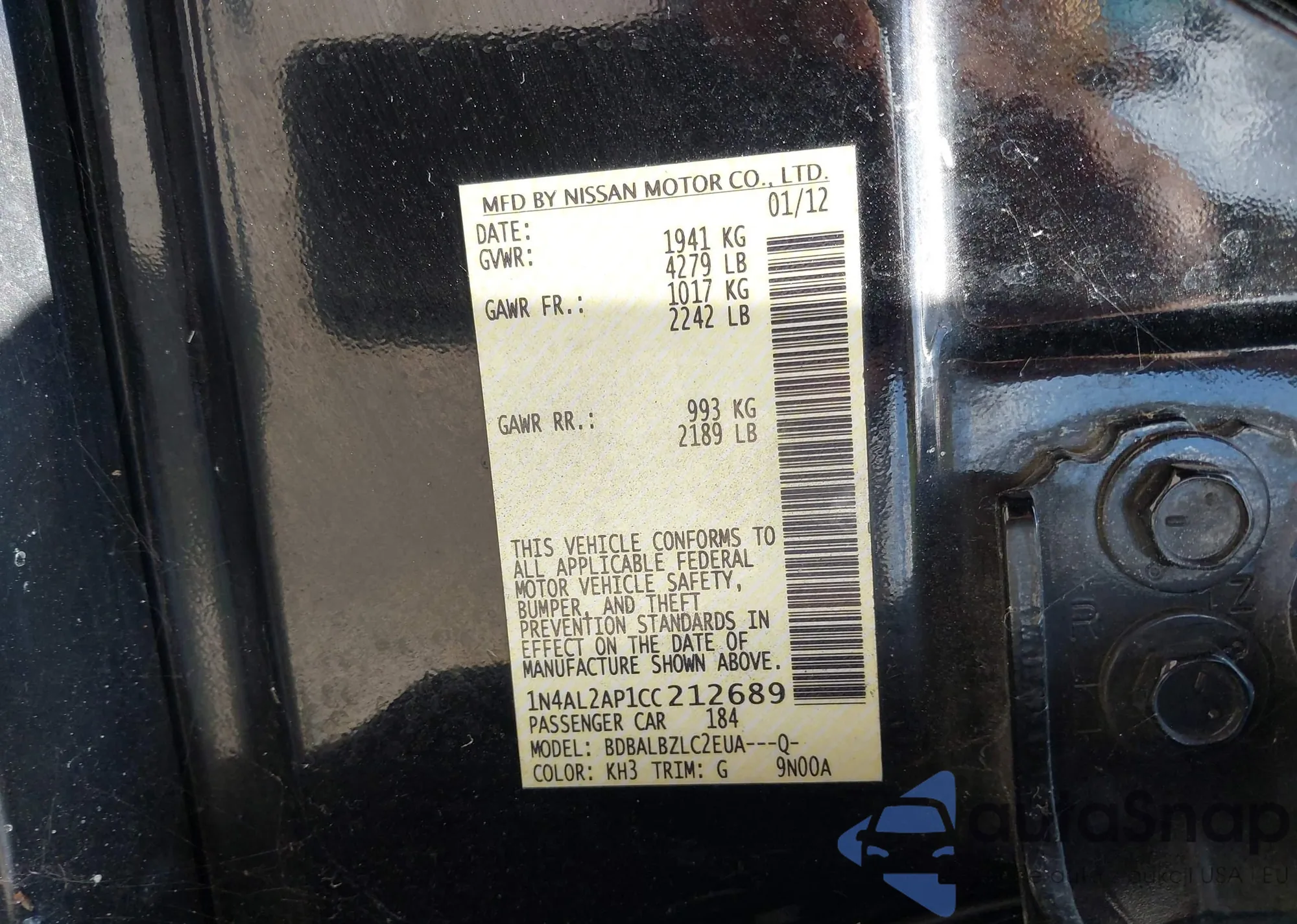 • VIN: 1N4AL2AP1CC212689