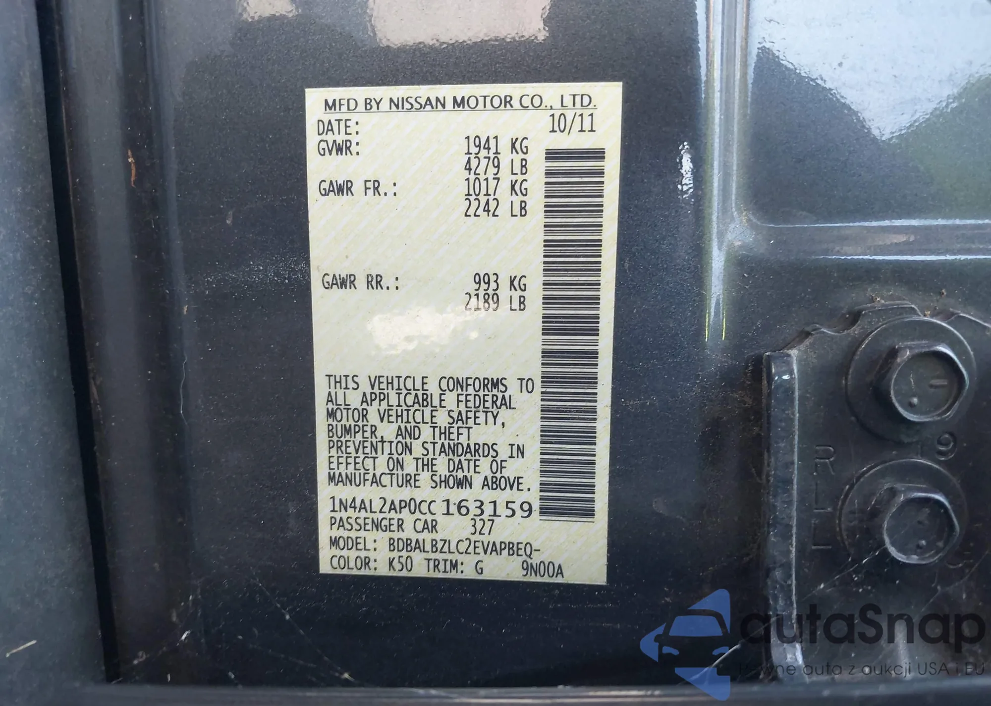 VIN: 1N4AL2AP0CC163159