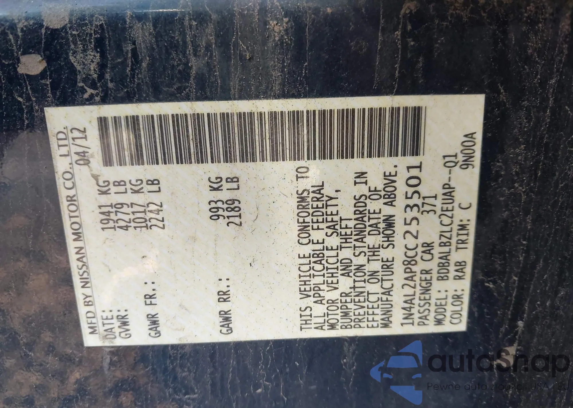 The car Nissan Altima 2012 (VIN 1N4AL2AP8CC253501) has already been auctioned 1 times and/or is sold by an unverified seller. We recommend checking the Carfax report and confirming registration possibilities before purchase.