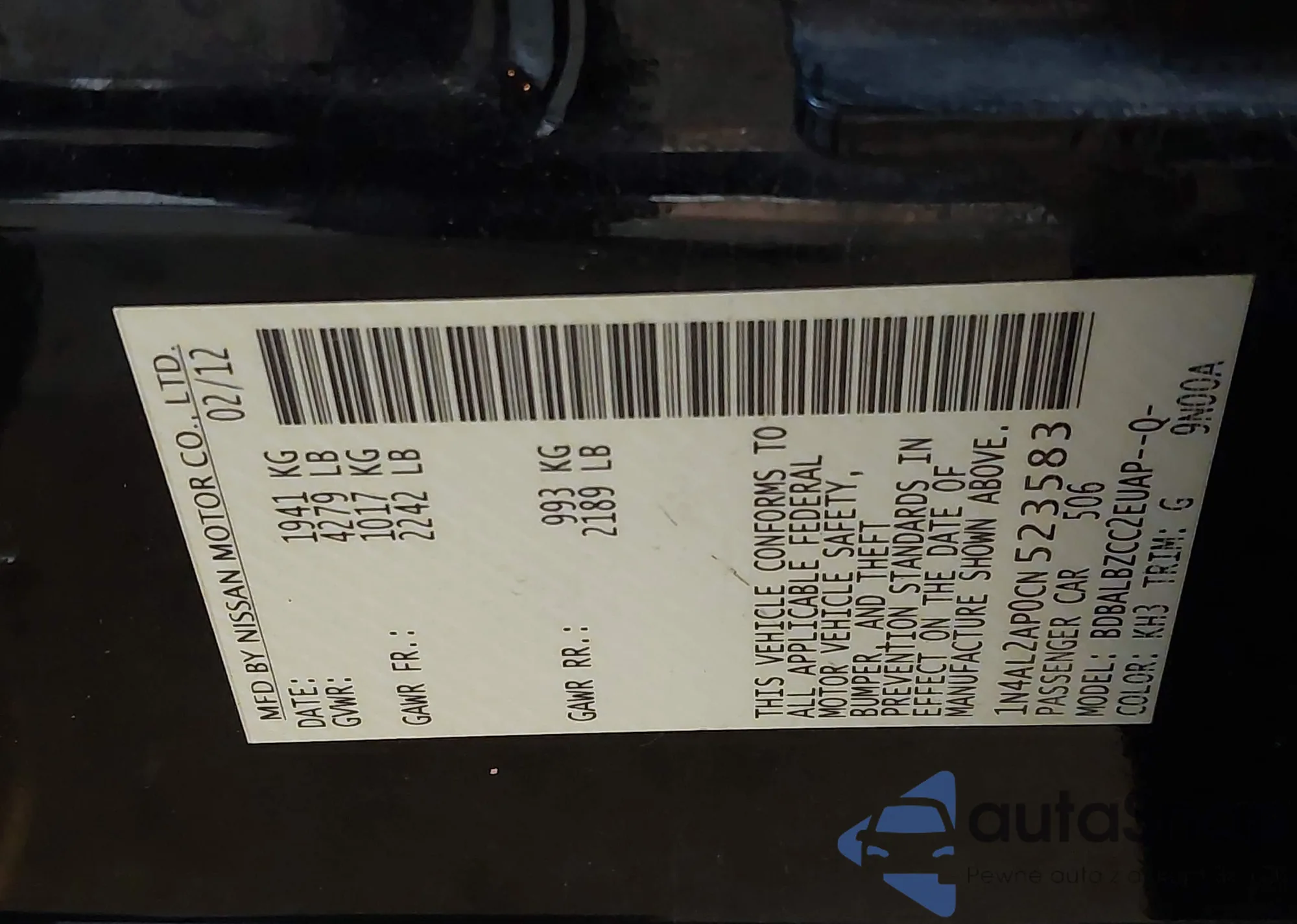 VIN: 1N4AL2AP0CN523583
