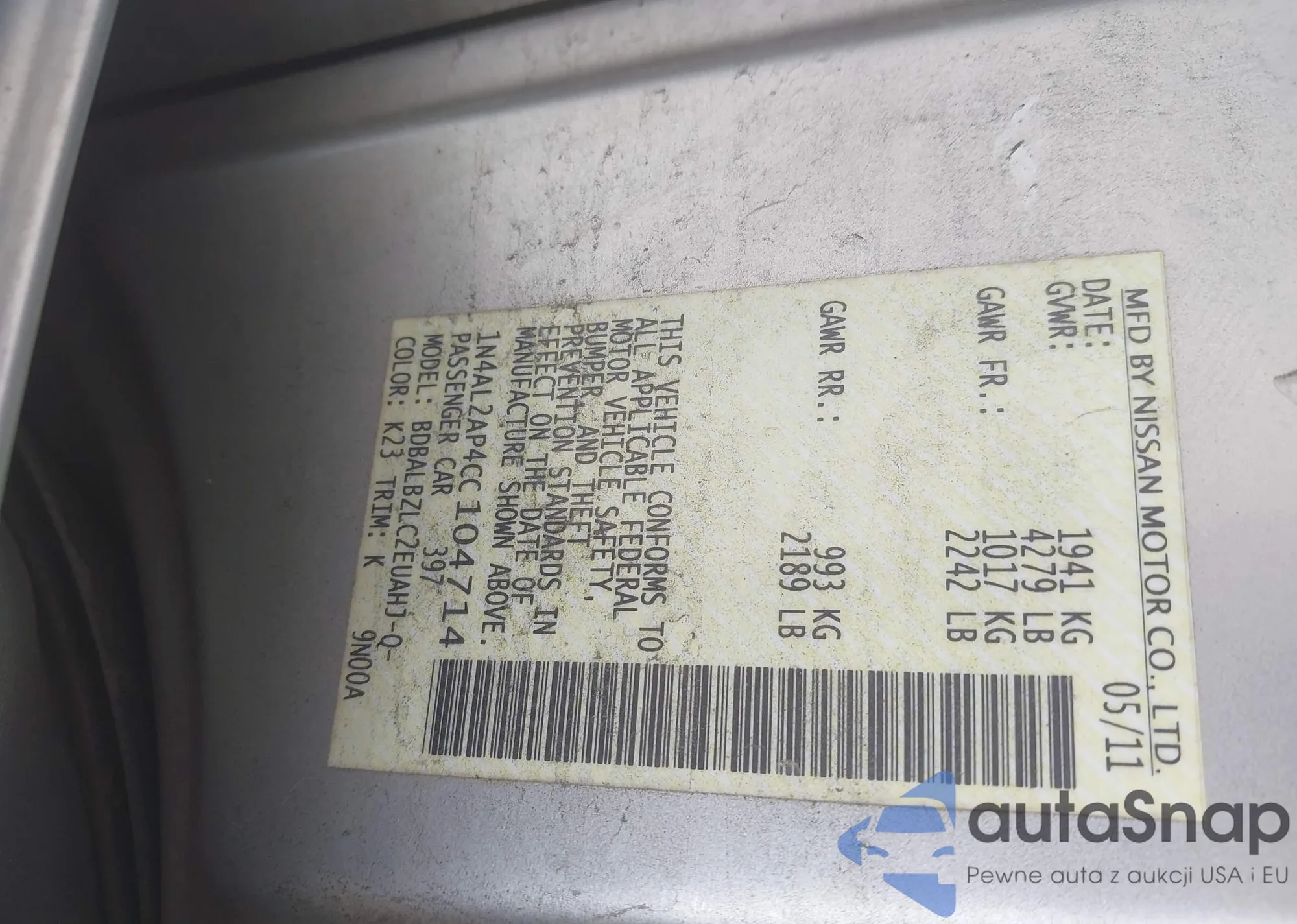 VIN: 1N4AL2AP4CC104714