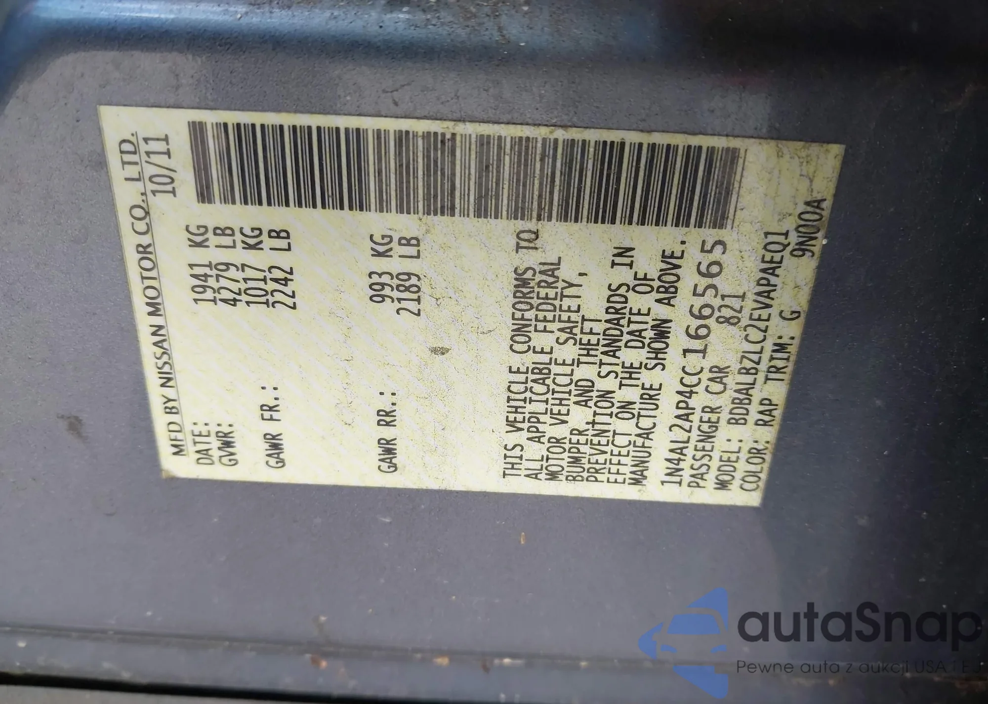 VIN: 1N4AL2AP4CC166565