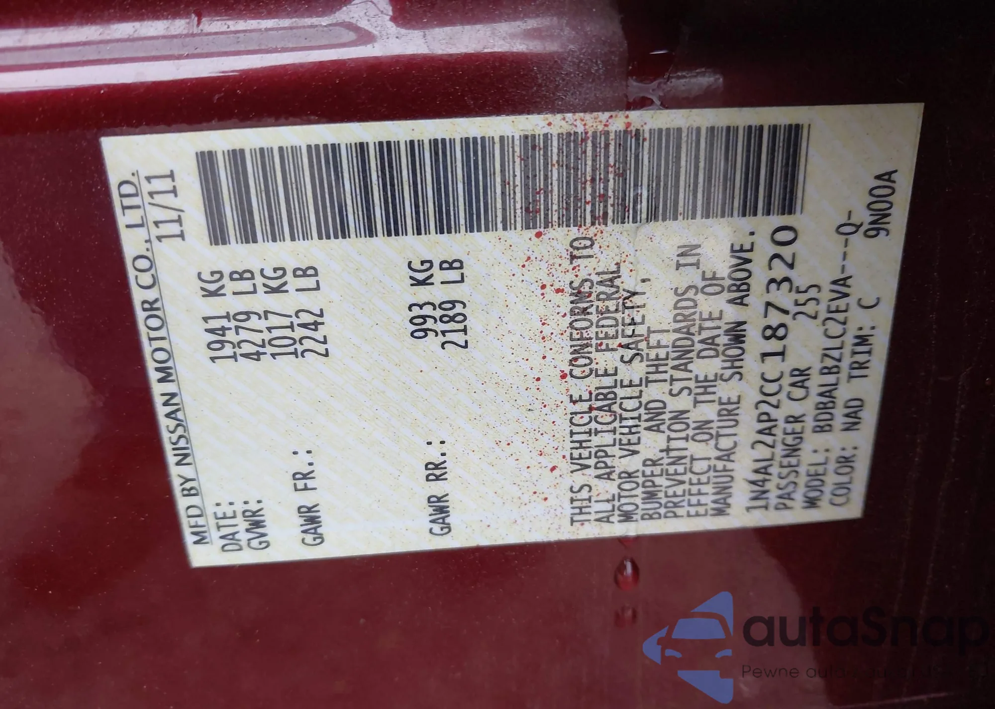 VIN: 1N4AL2AP2CC187320
