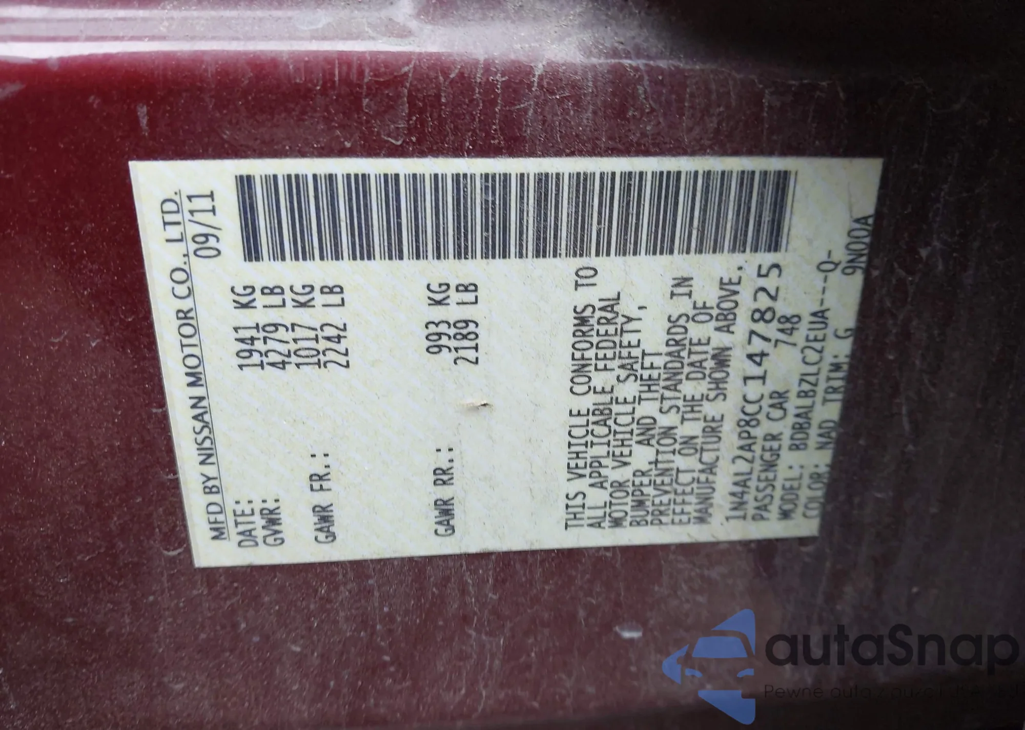 VIN: 1N4AL2AP8CC147825