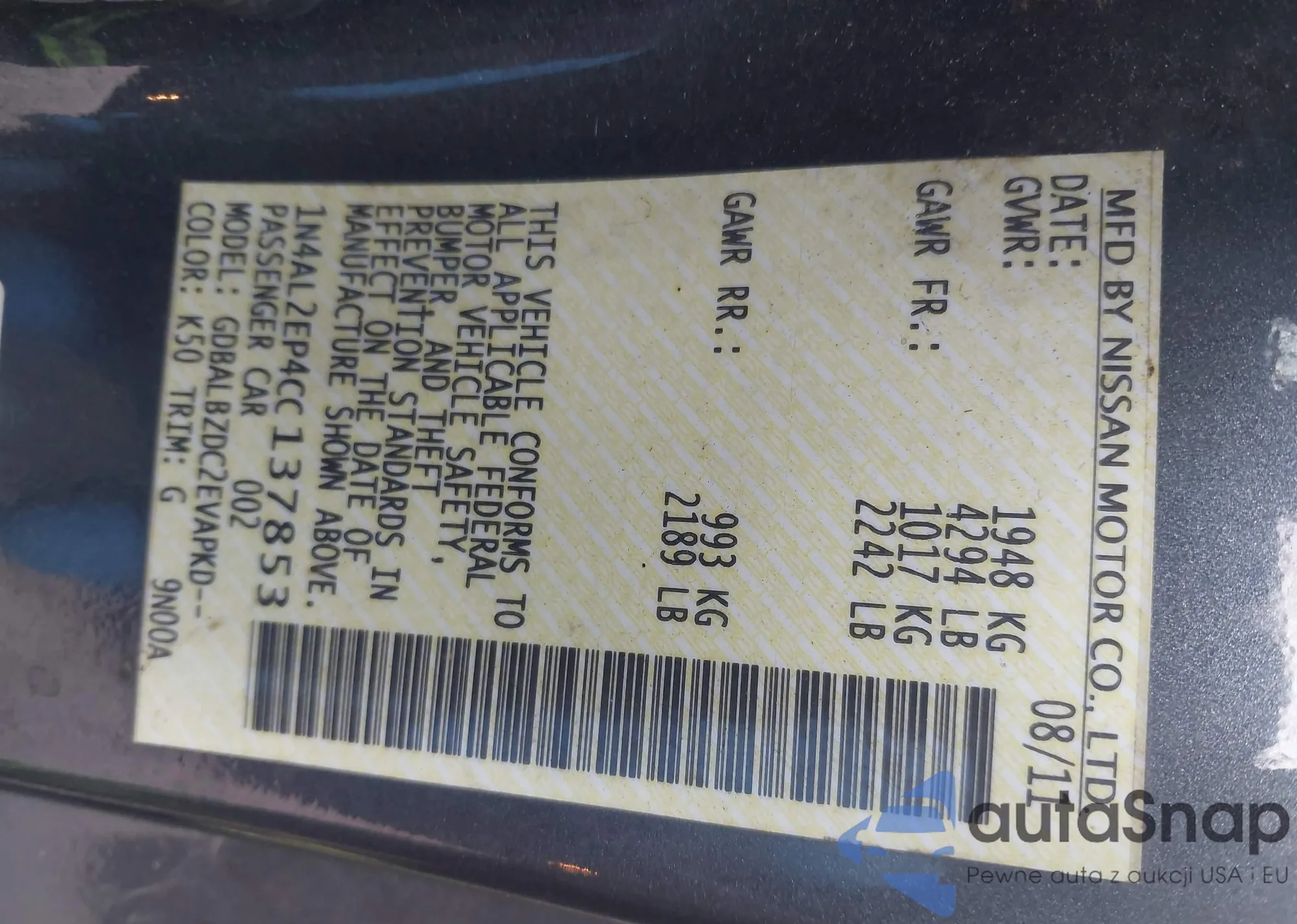 VIN: 1N4AL2EP4CC137853