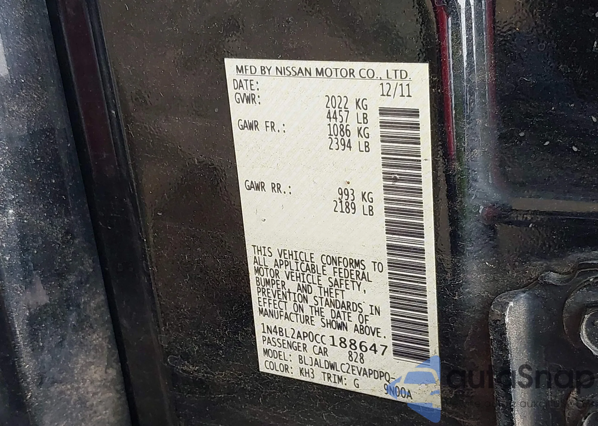 VIN: 1N4BL2AP0CC188647