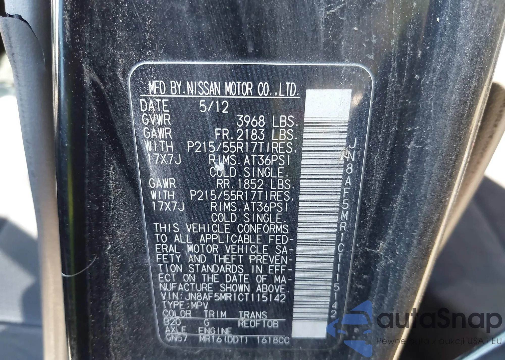 VIN: JN8AF5MR1CT115142
