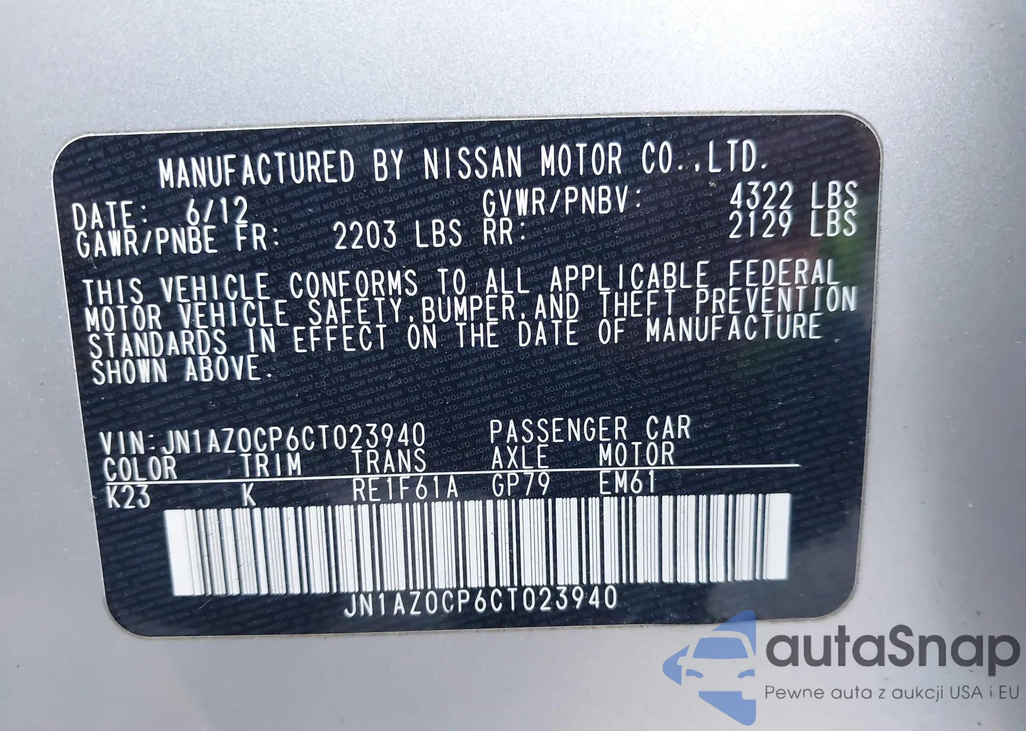 VIN: JN1AZ0CP6CT023940