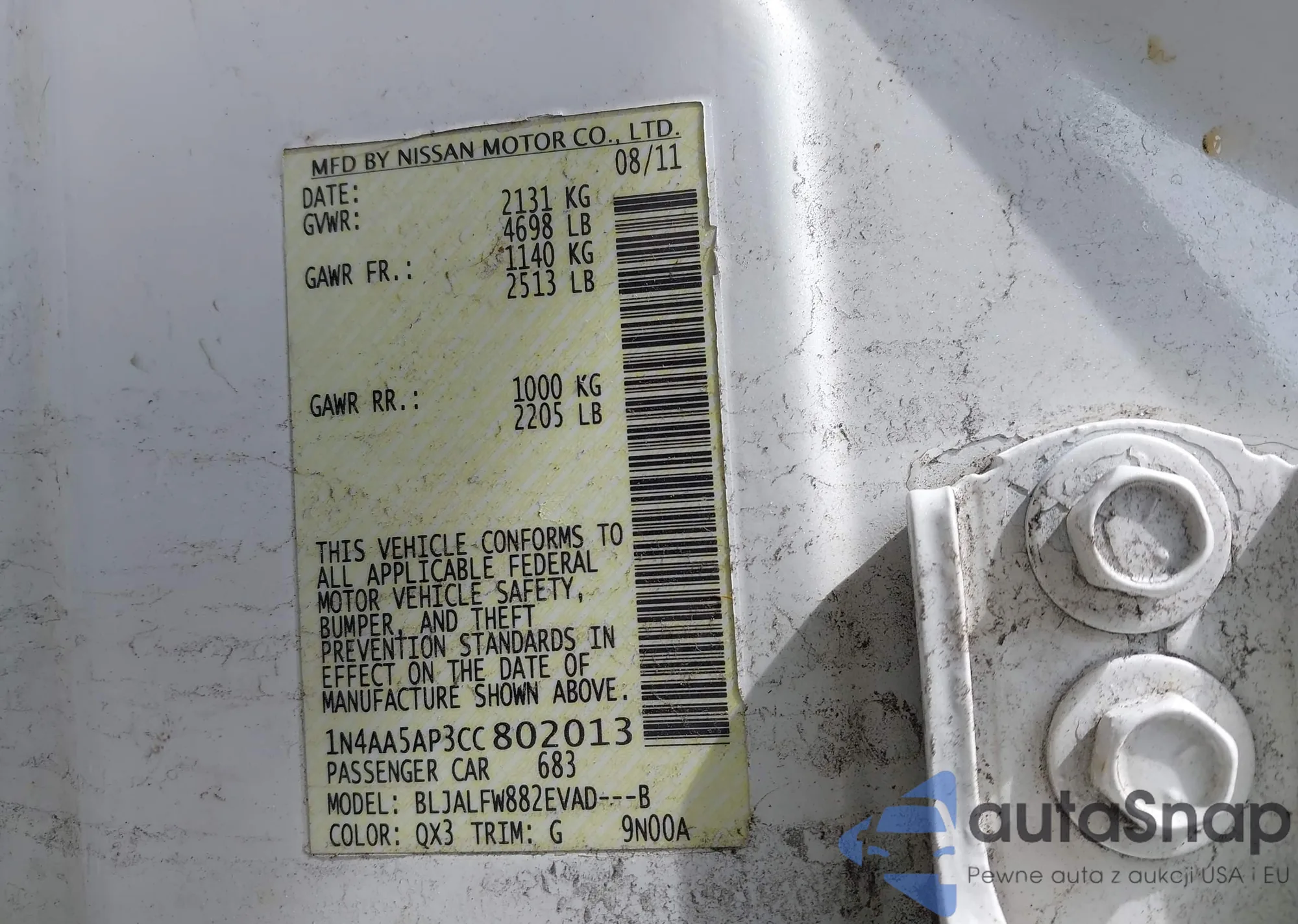 The car Nissan Maxima 2012 (VIN 1N4AA5AP3CC802013) has not been auctioned before. The documents are clean, and the mileage matches or is below the market average. Sold by an insurance company – we recommend purchase. Delivery to the port will take approx. 6–8 weeks.
