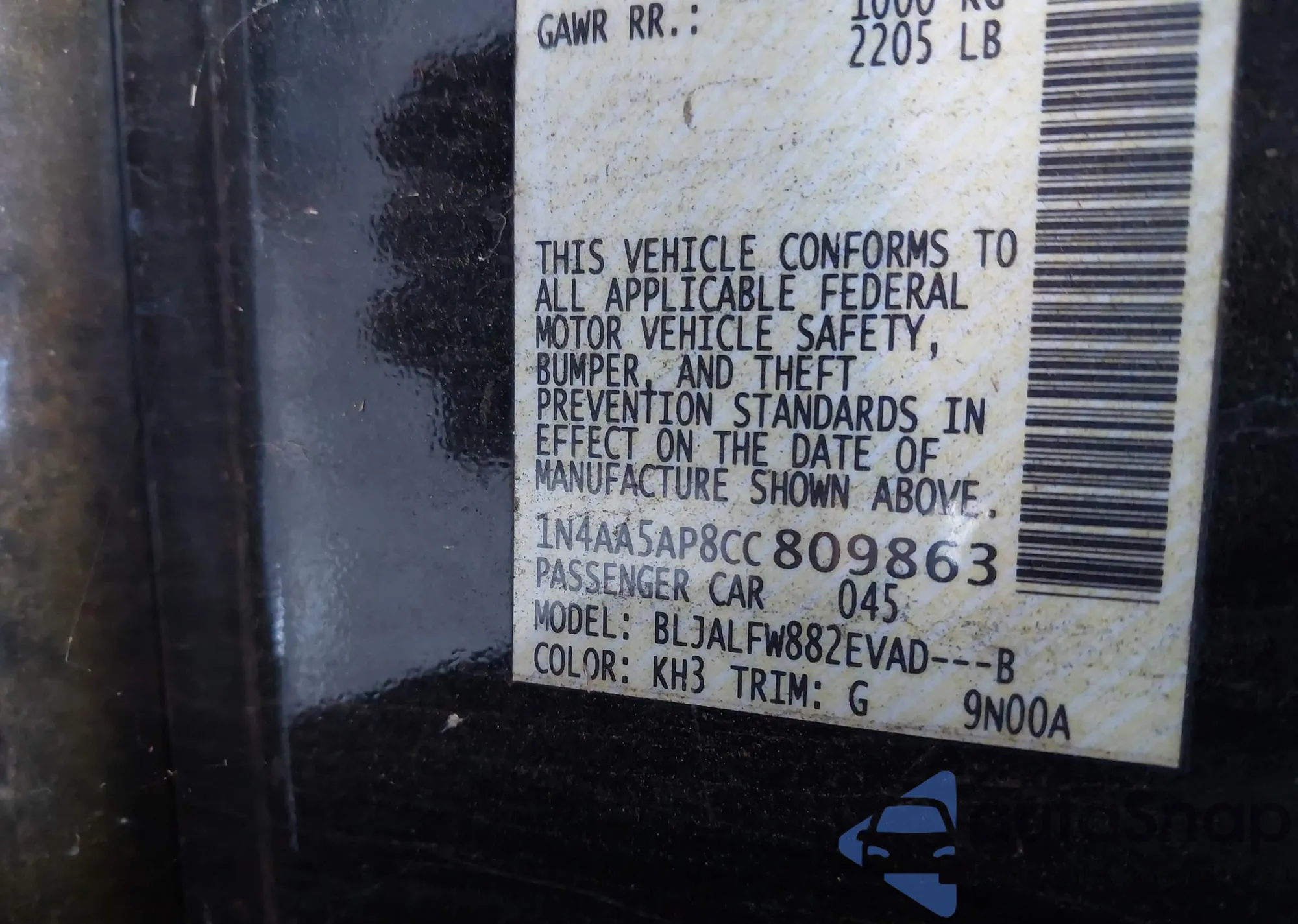 VIN: 1N4AA5AP8CC809863
