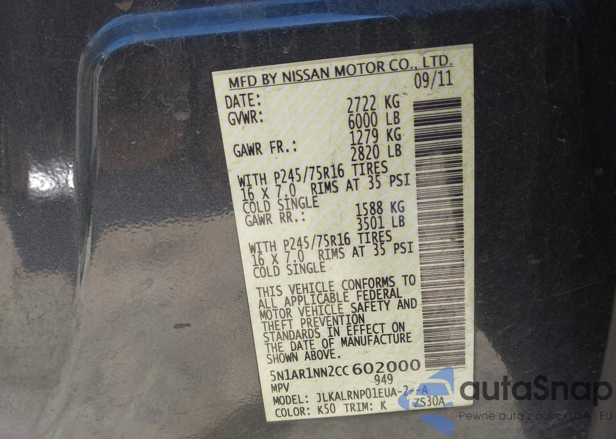 The car Nissan Pathfinder 2012 (VIN 5N1AR1NN2CC602000) has already been auctioned 1 times and/or is sold by an unverified seller. We recommend checking the Carfax report and confirming registration possibilities before purchase.