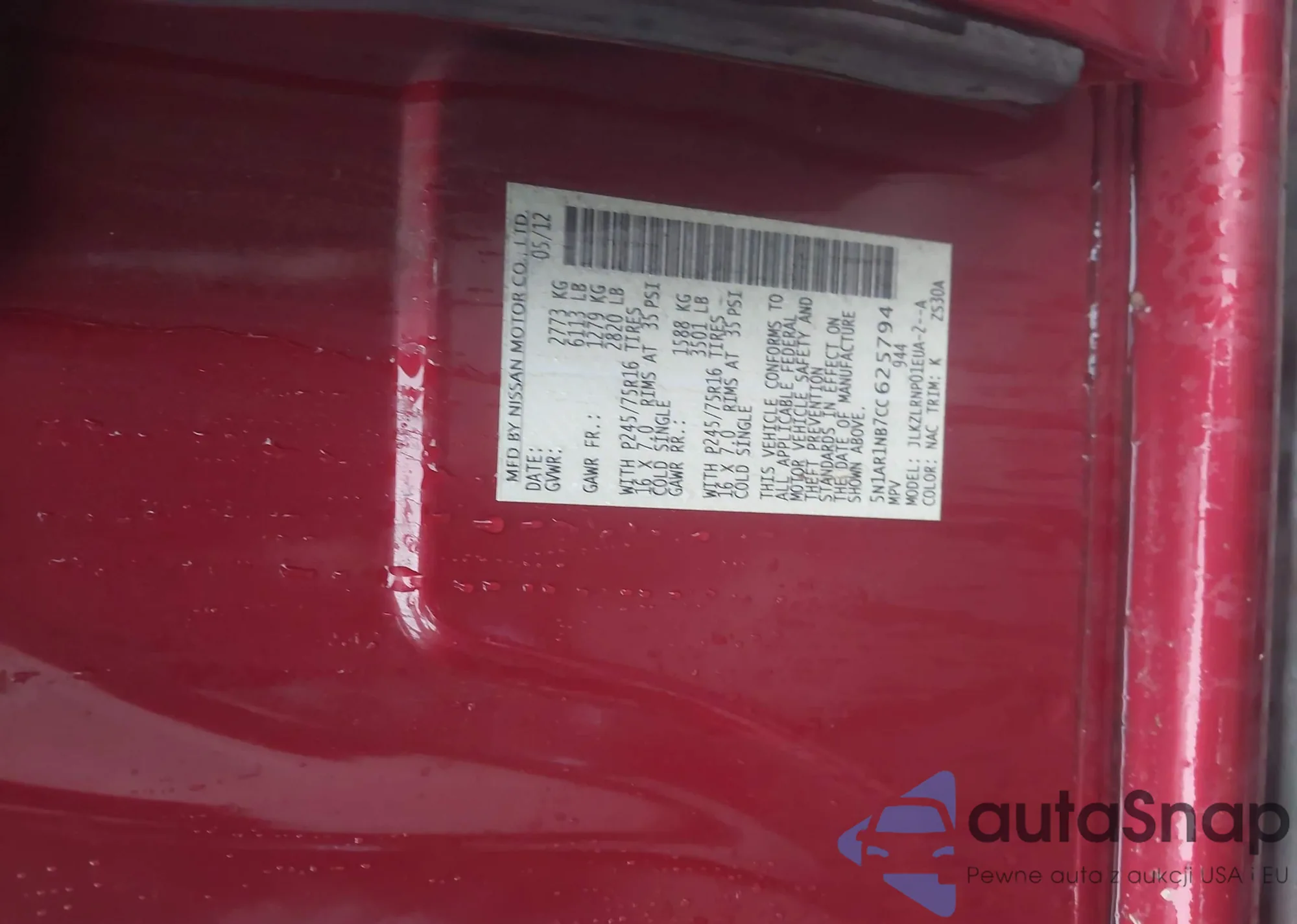 VIN: 5N1AR1NB7CC625794