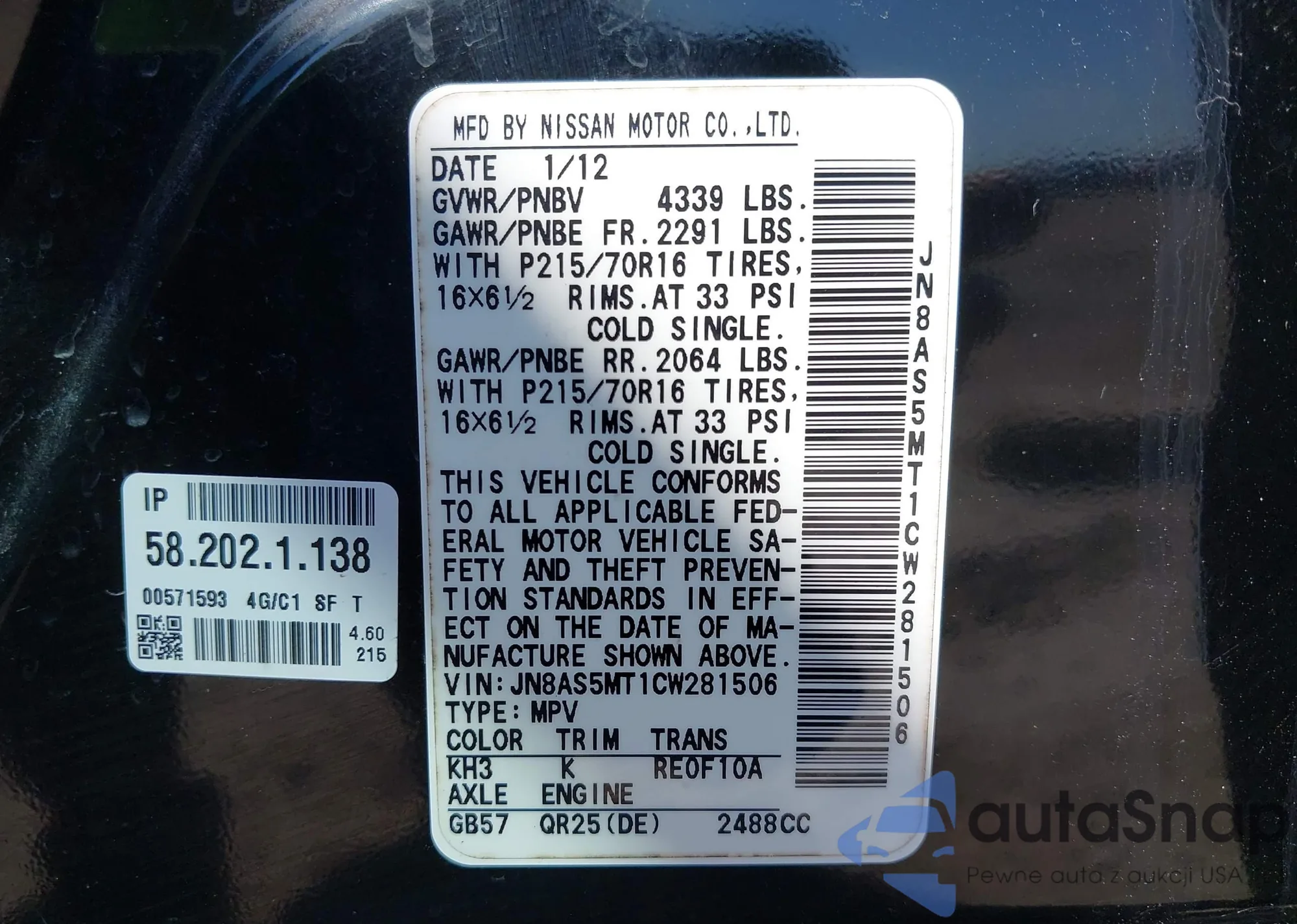 VIN: JN8AS5MT1CW281506