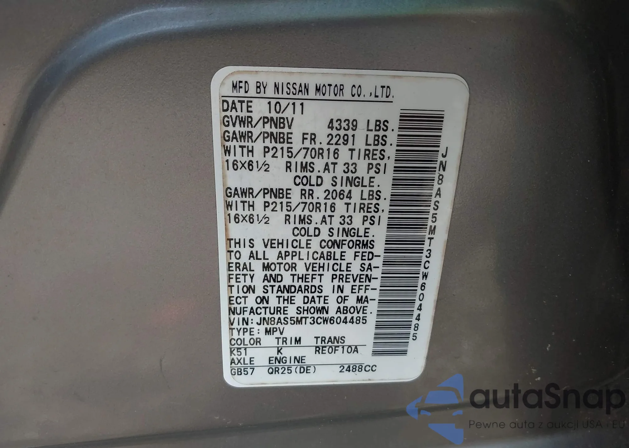 VIN: JN8AS5MT3CW604485