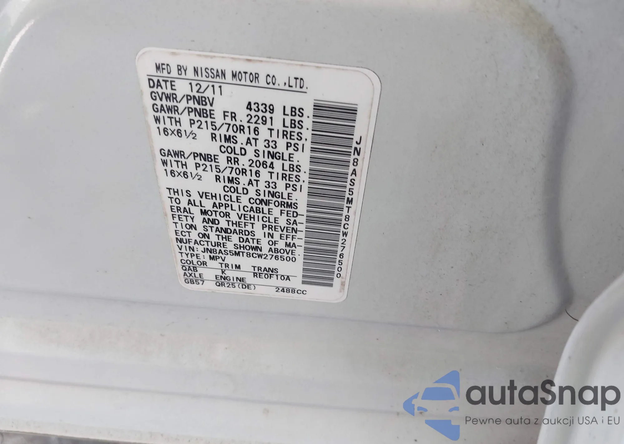 VIN: JN8AS5MT8CW276500