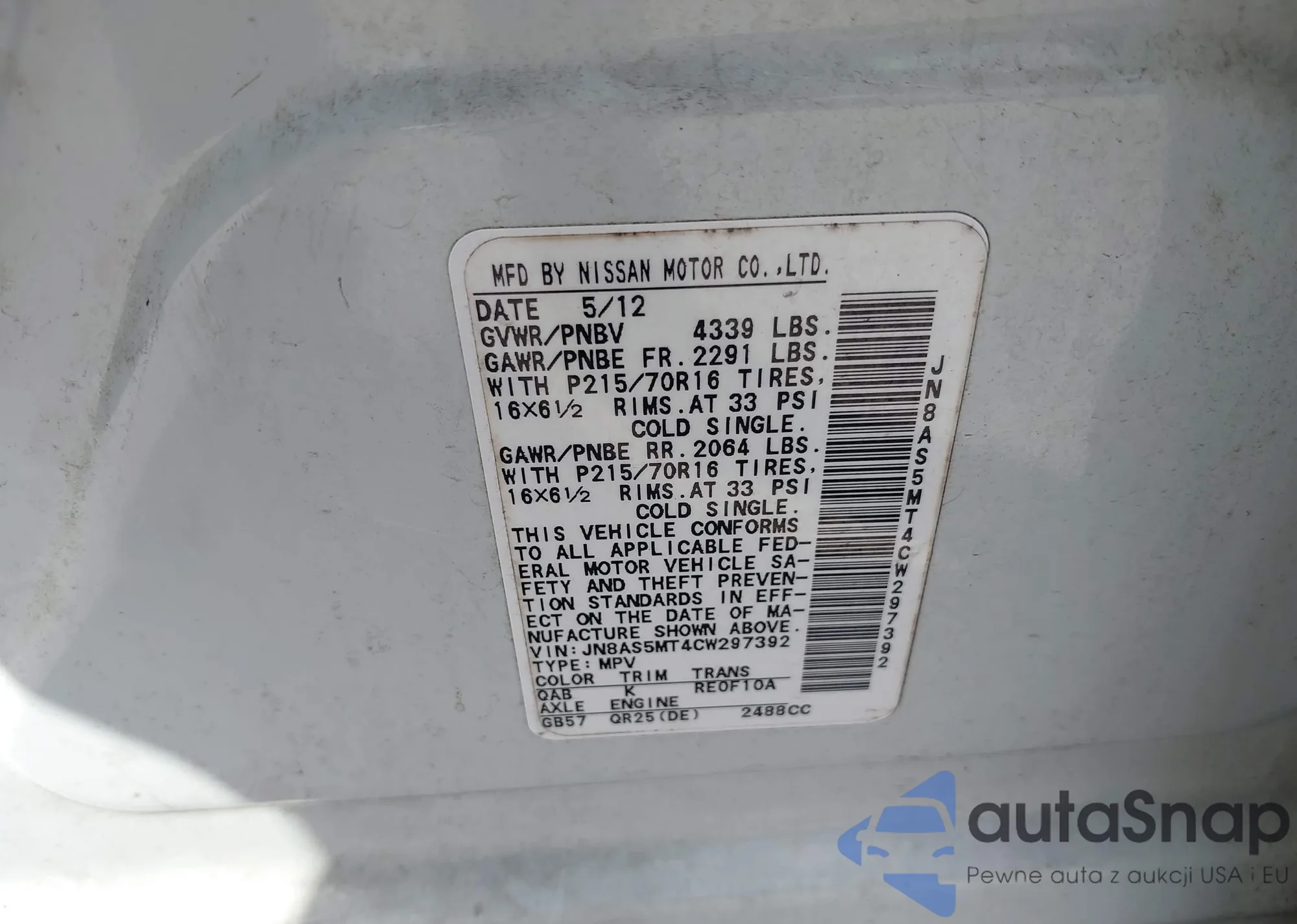 VIN: JN8AS5MT4CW297392