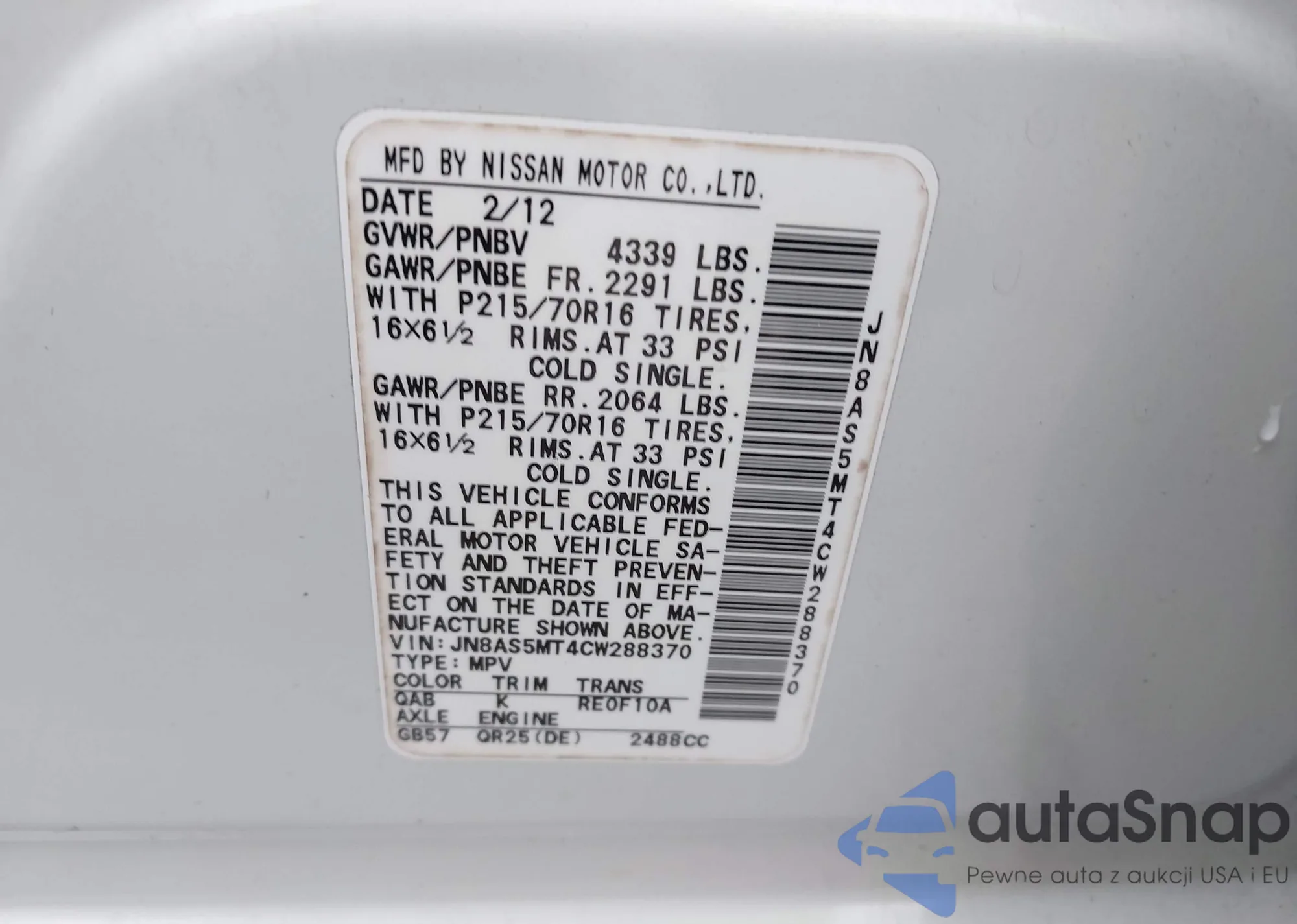 VIN: JN8AS5MT4CW288370