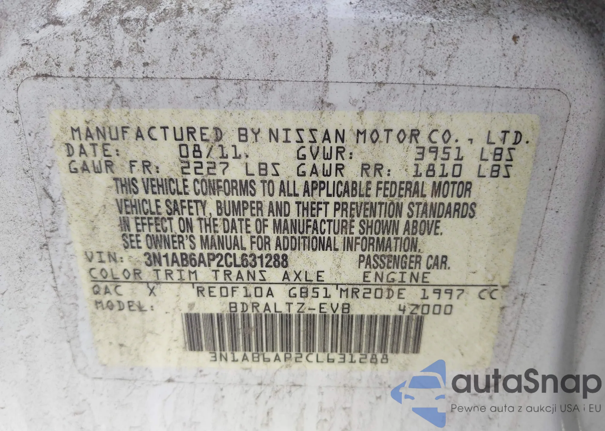 VIN: 3N1AB6AP2CL631288