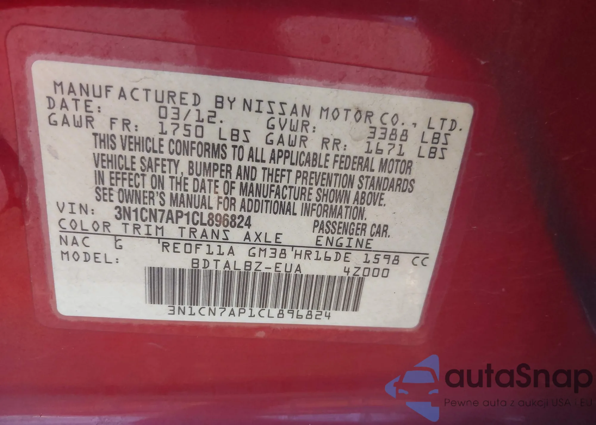 VIN: 3N1CN7AP1CL896824