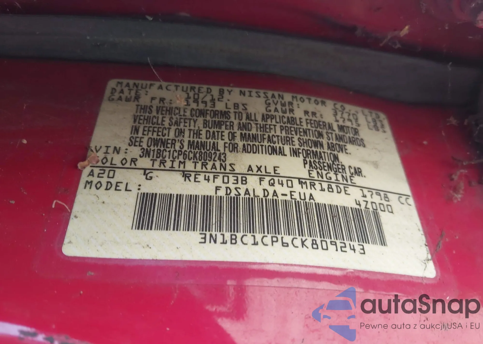 The car Nissan Versa 2012 (VIN 3N1BC1CP6CK809243) is sold by an unverified seller. We recommend checking the Carfax report and confirming registration possibilities before purchase.