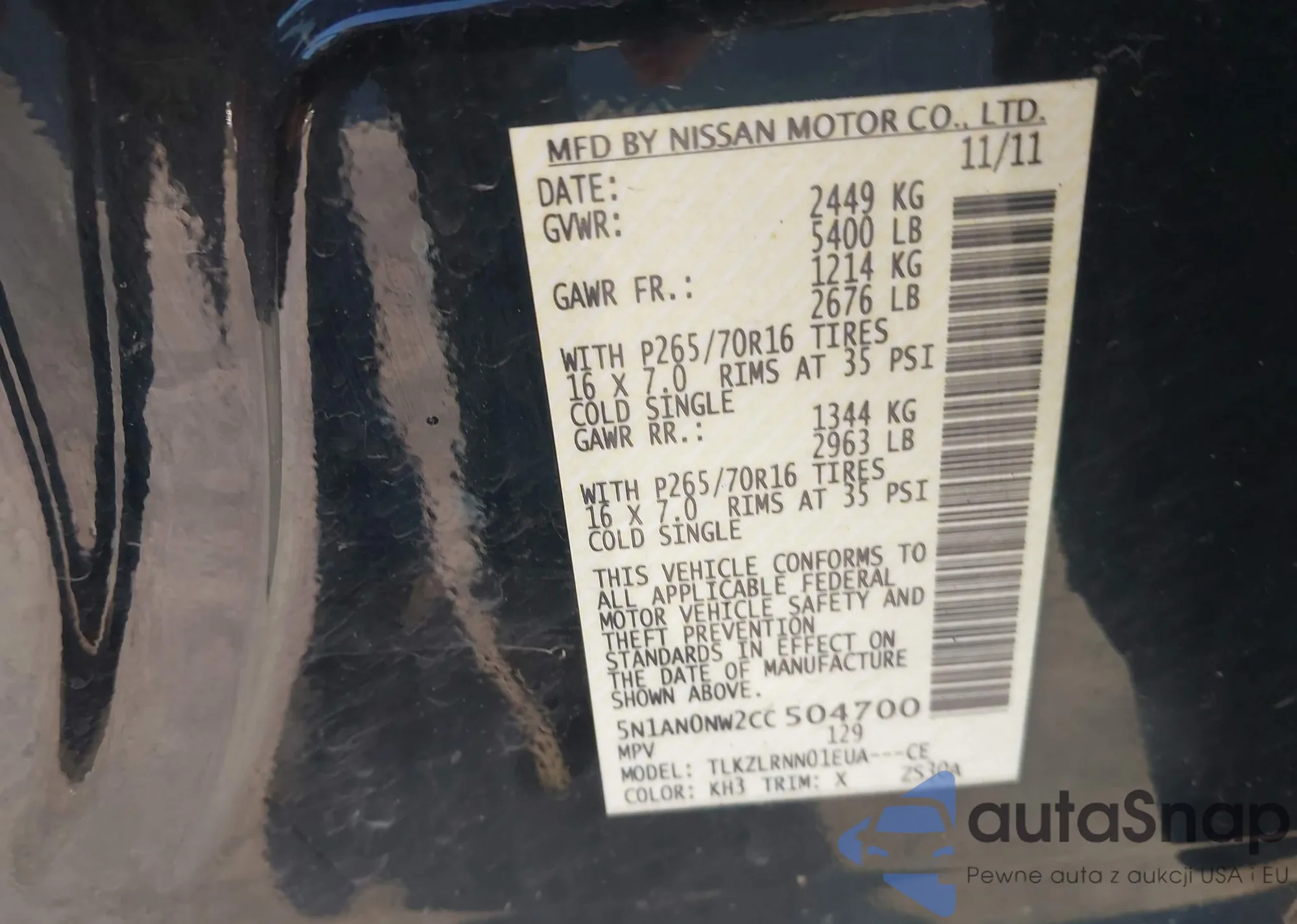 VIN: 5N1AN0NW2CC504700