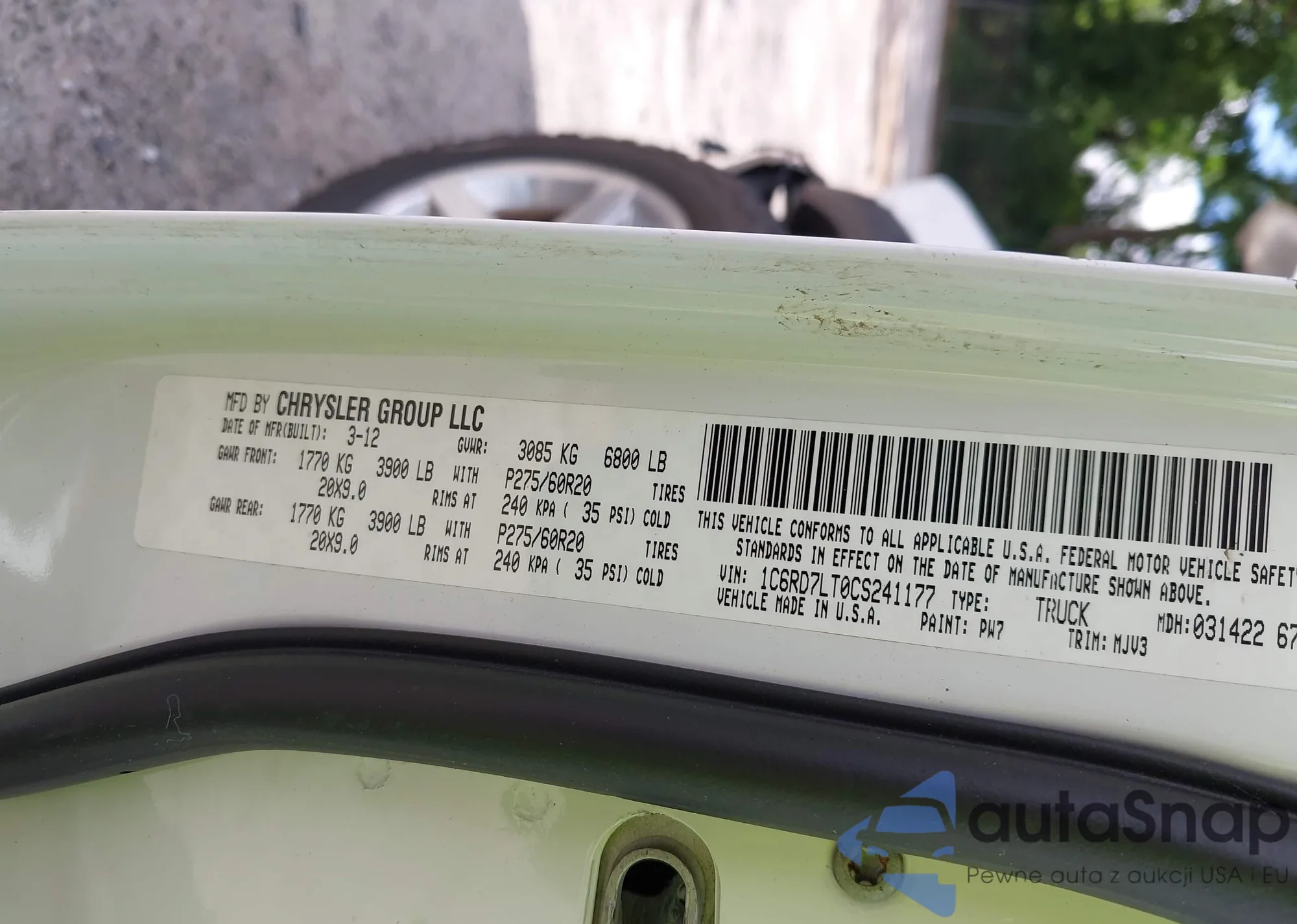 VIN: 1C6RD7LT0CS241177