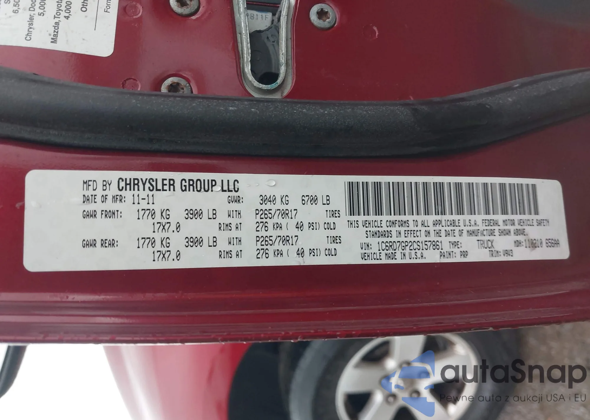 VIN: 1C6RD7GP2CS157861