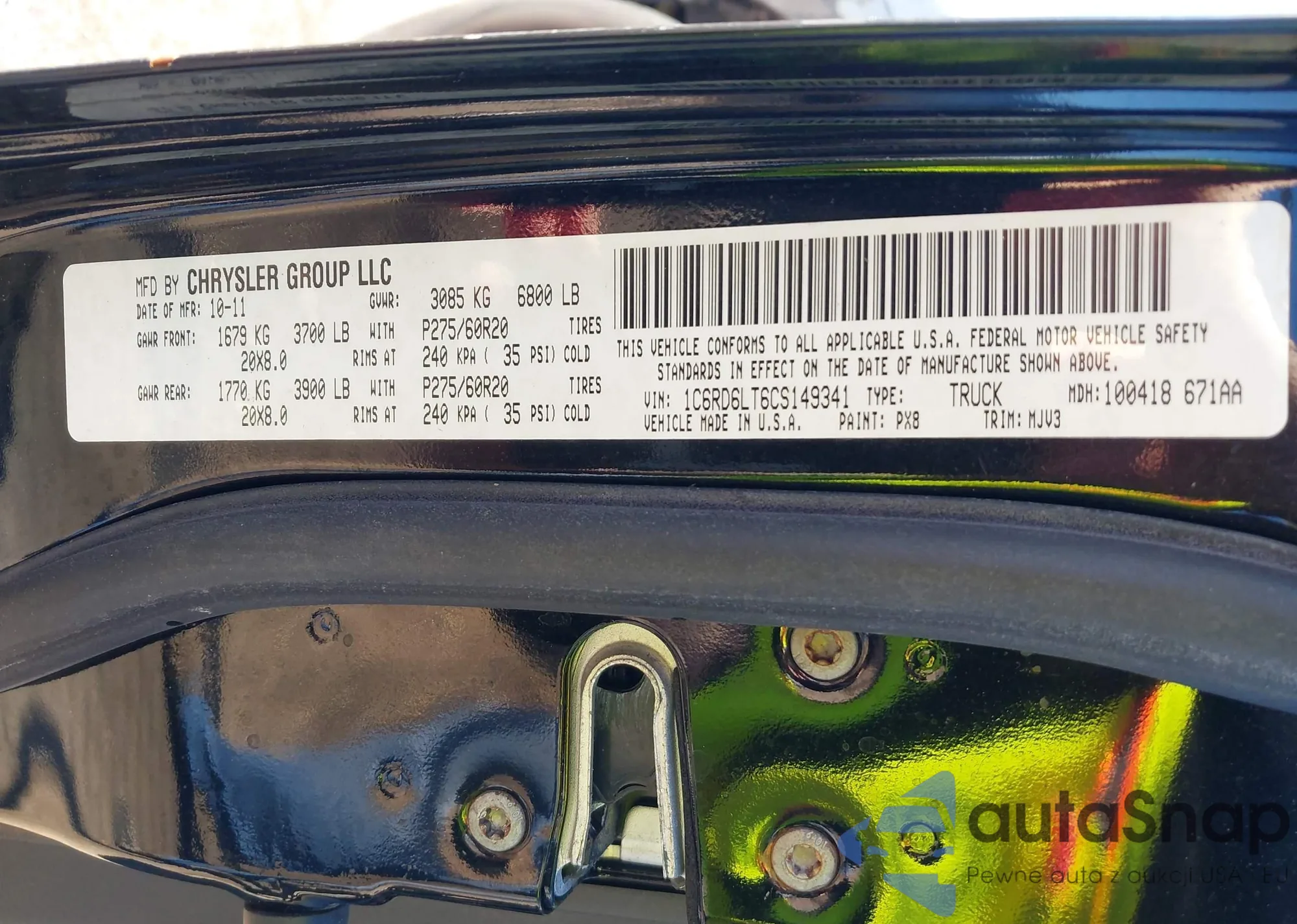 VIN: 1C6RD6LT6CS149341