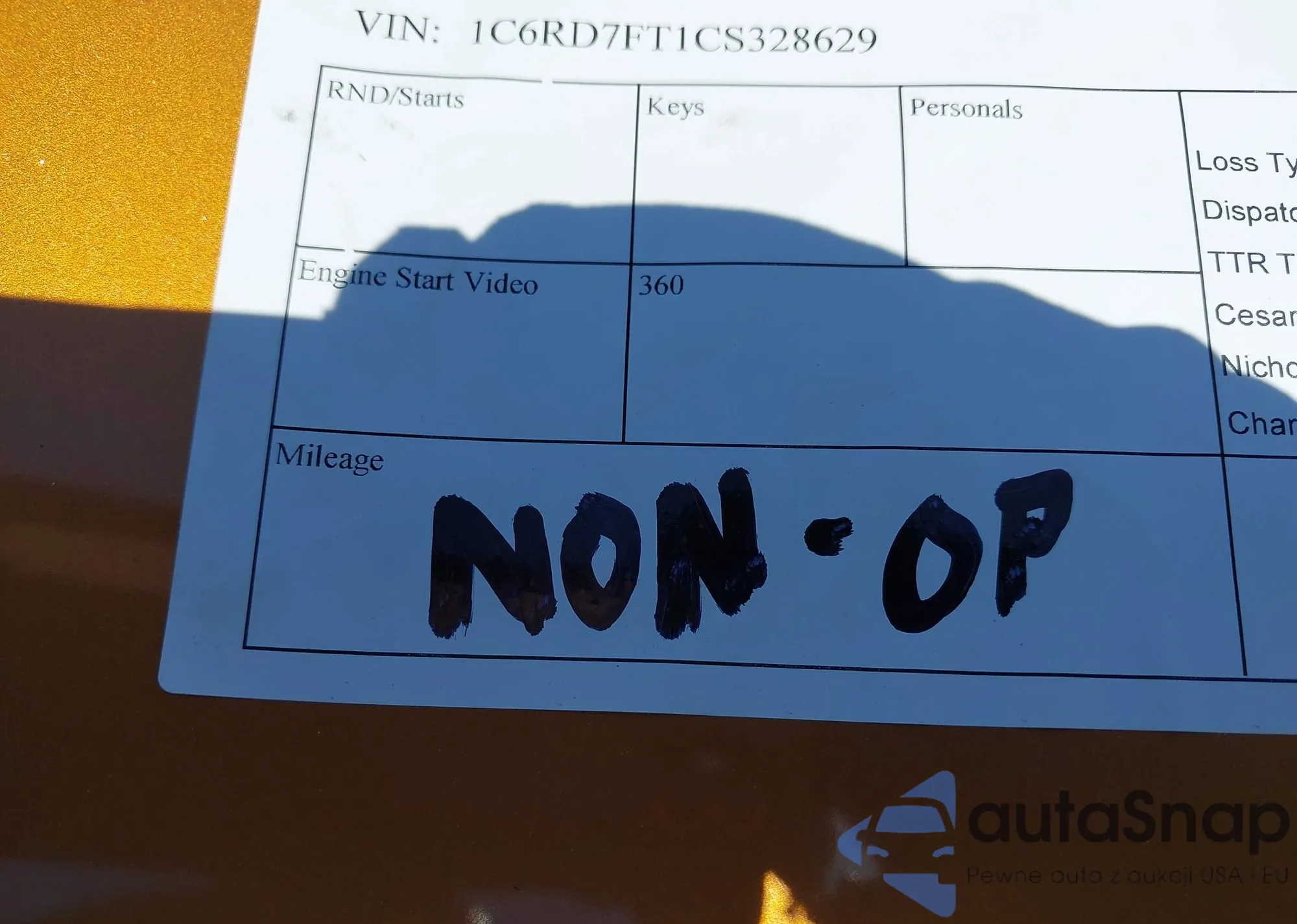 VIN: 1C6RD7FT1CS328629