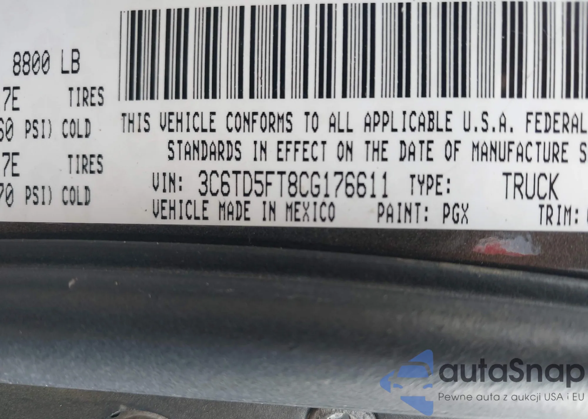 VIN: 3C6TD5FT8CG176611