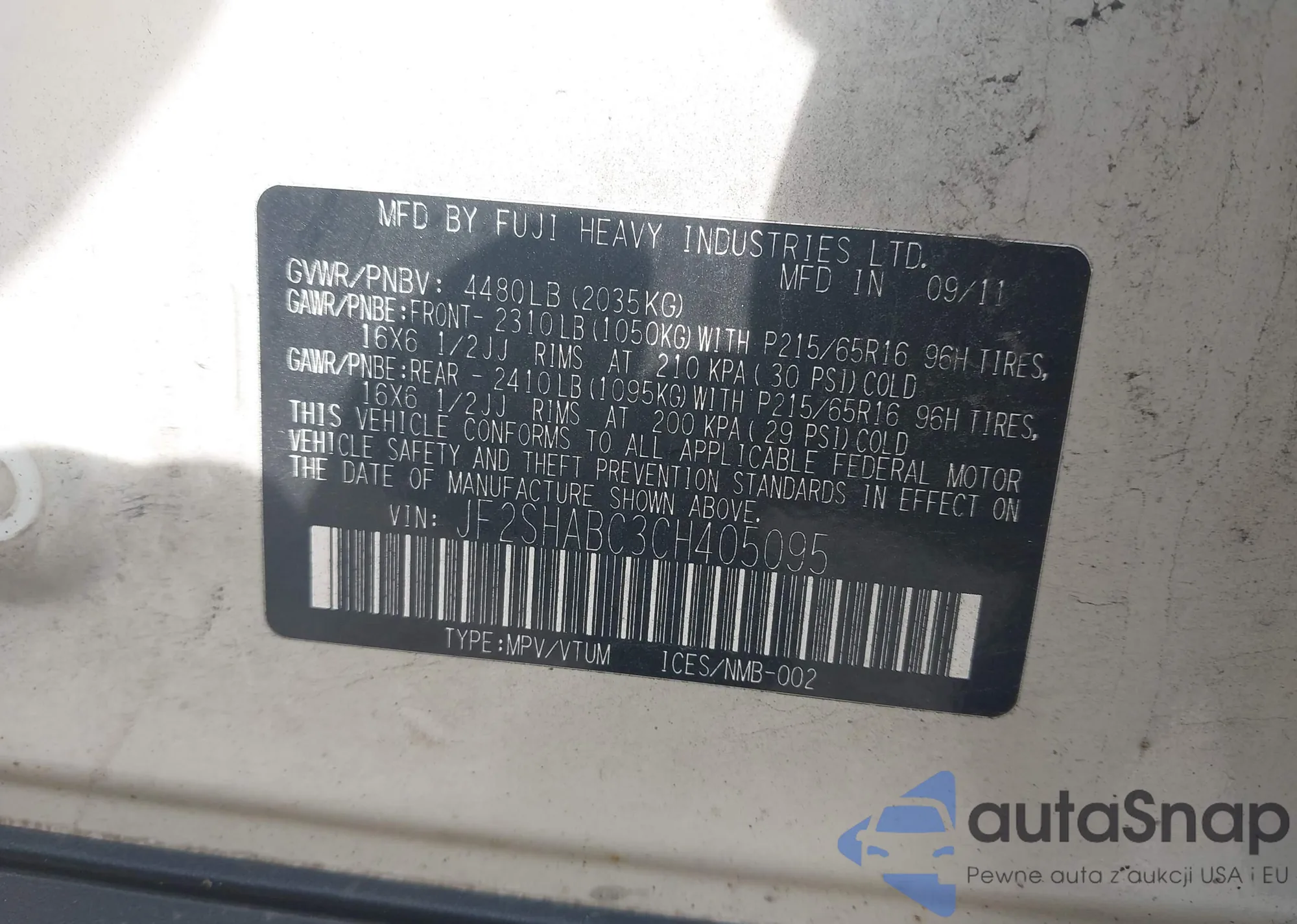 VIN: JF2SHABC3CH405095