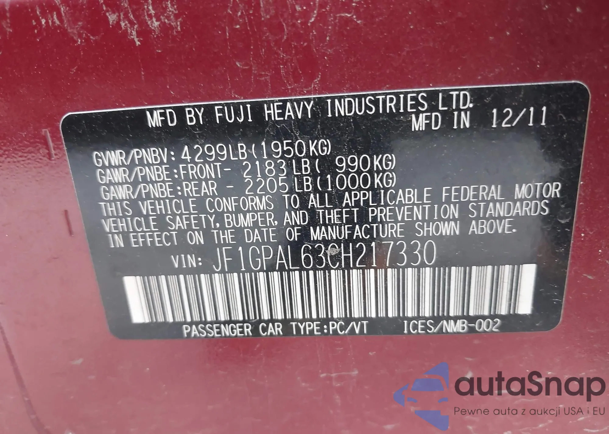 VIN: JF1GPAL63CH217330