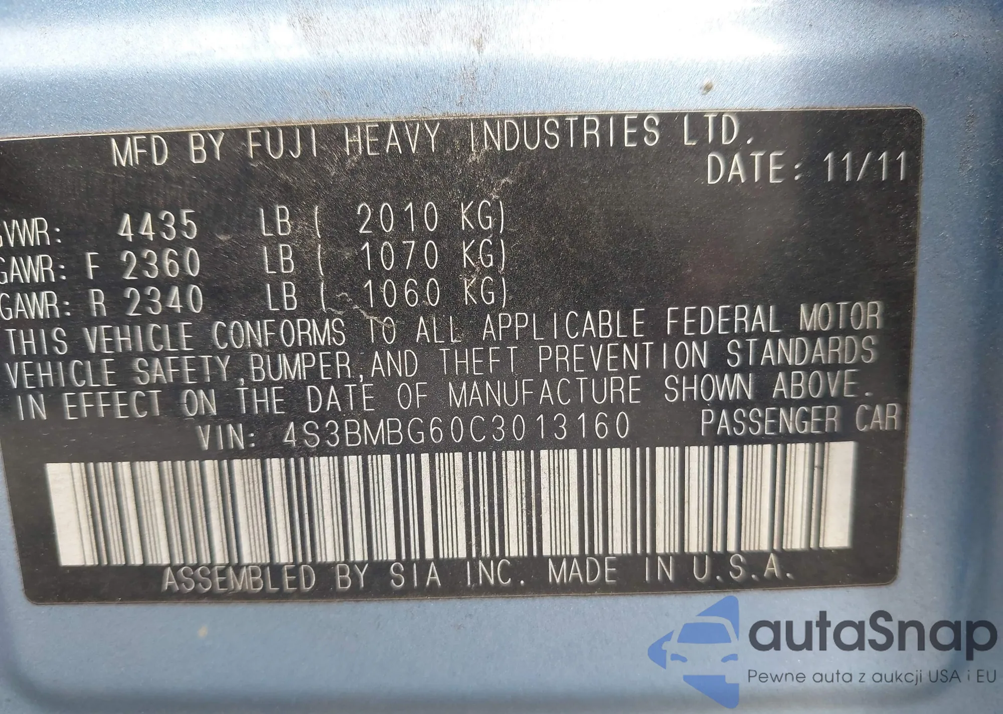 VIN: 4S3BMBG60C3013160