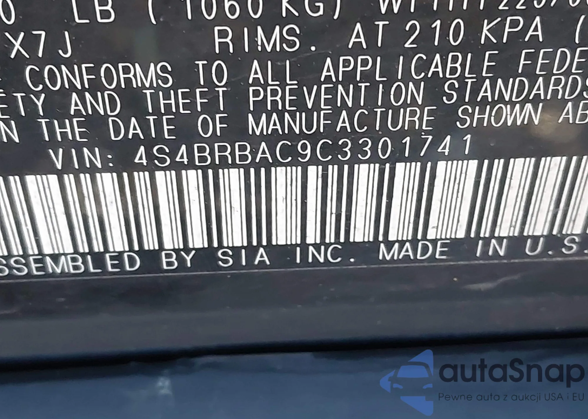 VIN: 4S4BRBAC9C3301741
