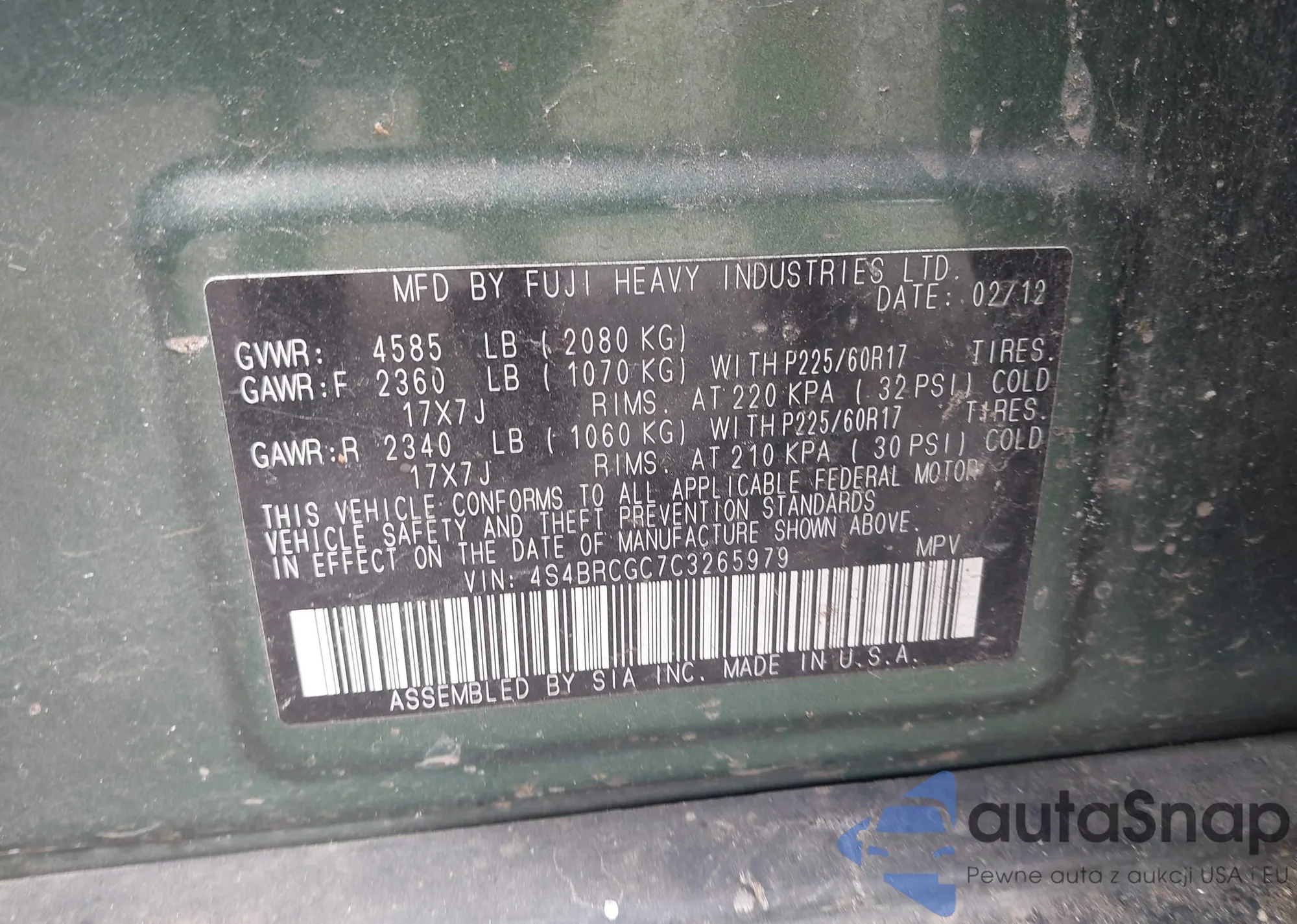 VIN: 4S4BRCGC7C3265979