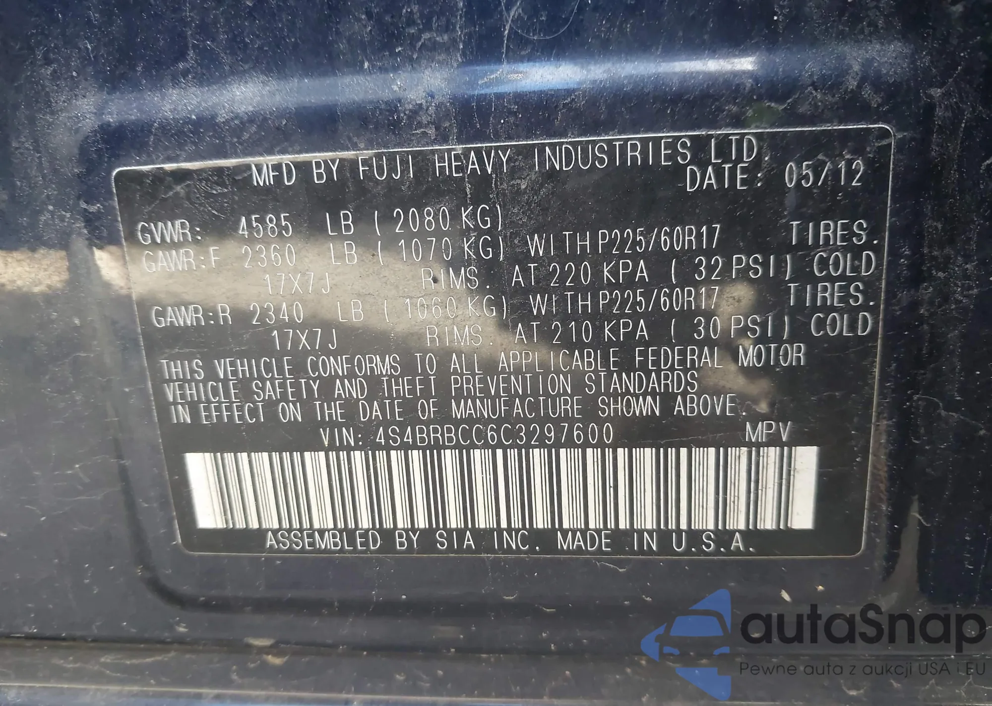 Subaru Outback 2012 – Vehicle History (Sold at IAAI)