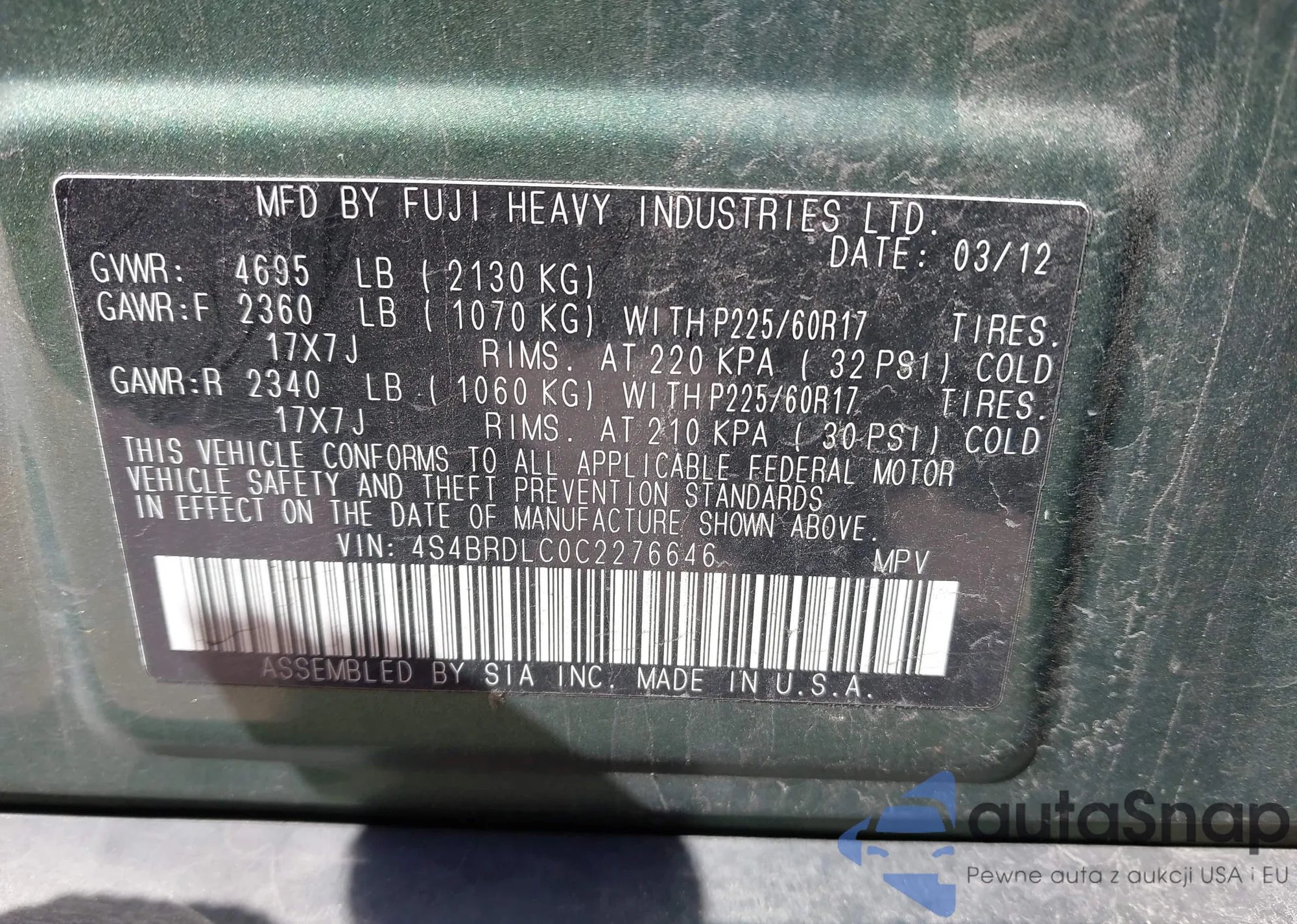 VIN: 4S4BRDLC0C2276646