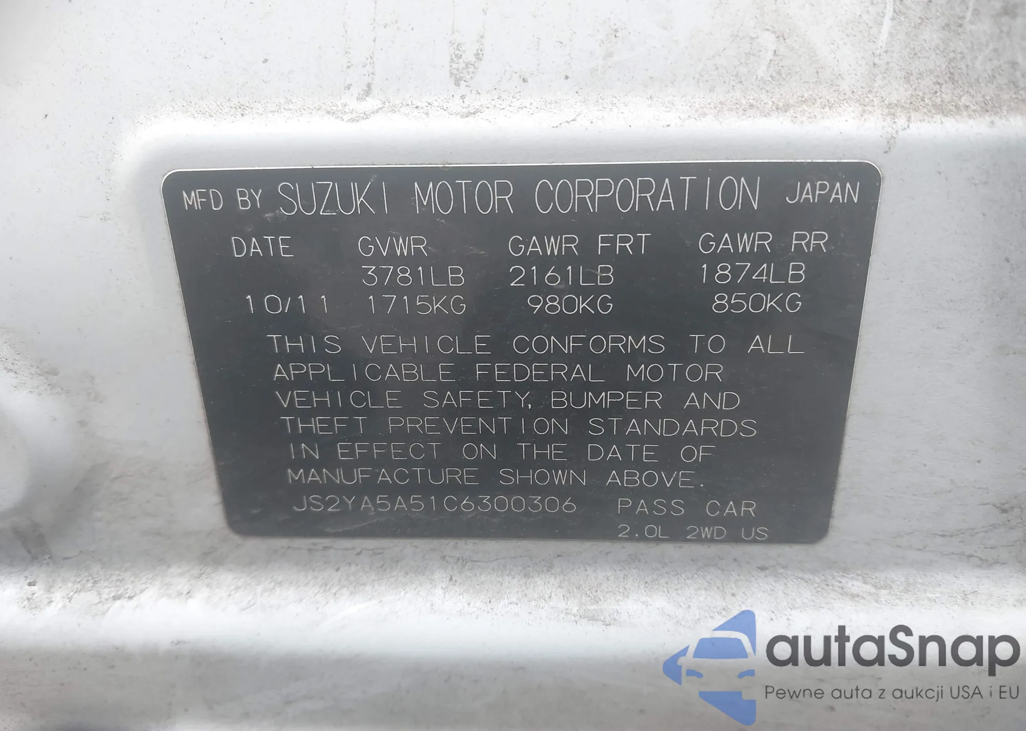VIN: JS2YA5A51C6300306