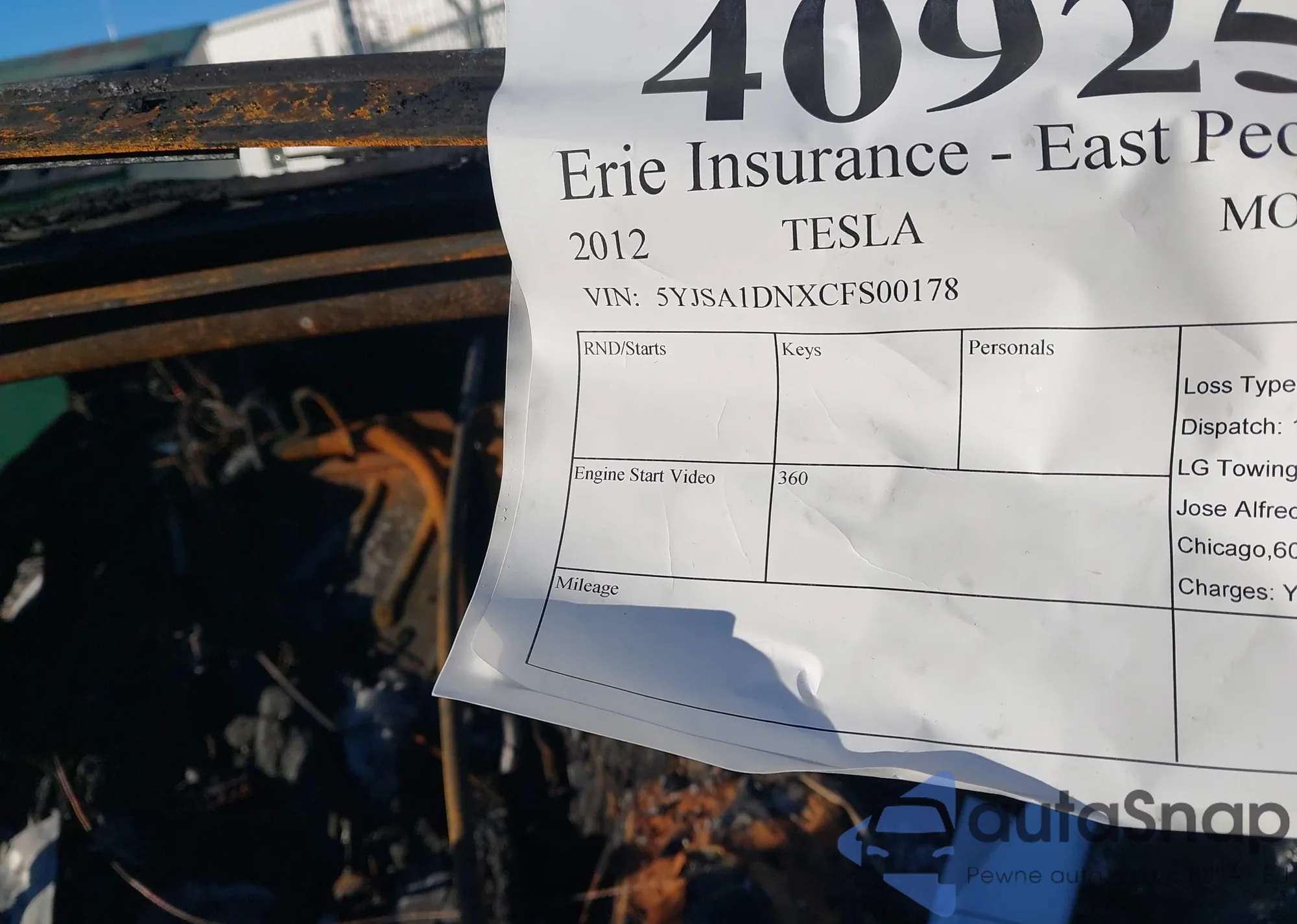 The car Tesla Model S 2012 (VIN 5YJSA1DNXCFS00178) has not been auctioned before. The documents are clean, and the mileage matches or is below the market average. Sold by an insurance company – we recommend purchase. Delivery to the port will take approx. 6–8 weeks.