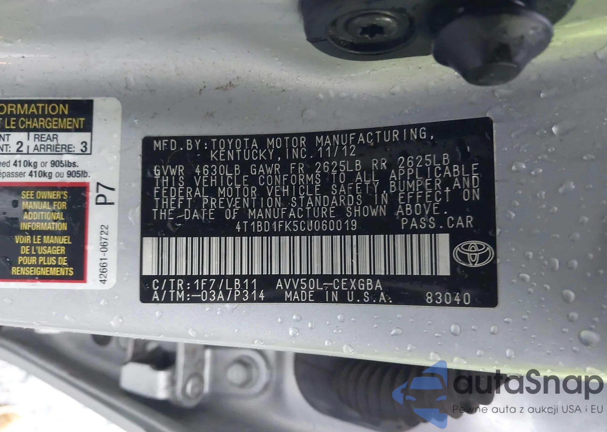 VIN: 4T1BD1FK5CU060019