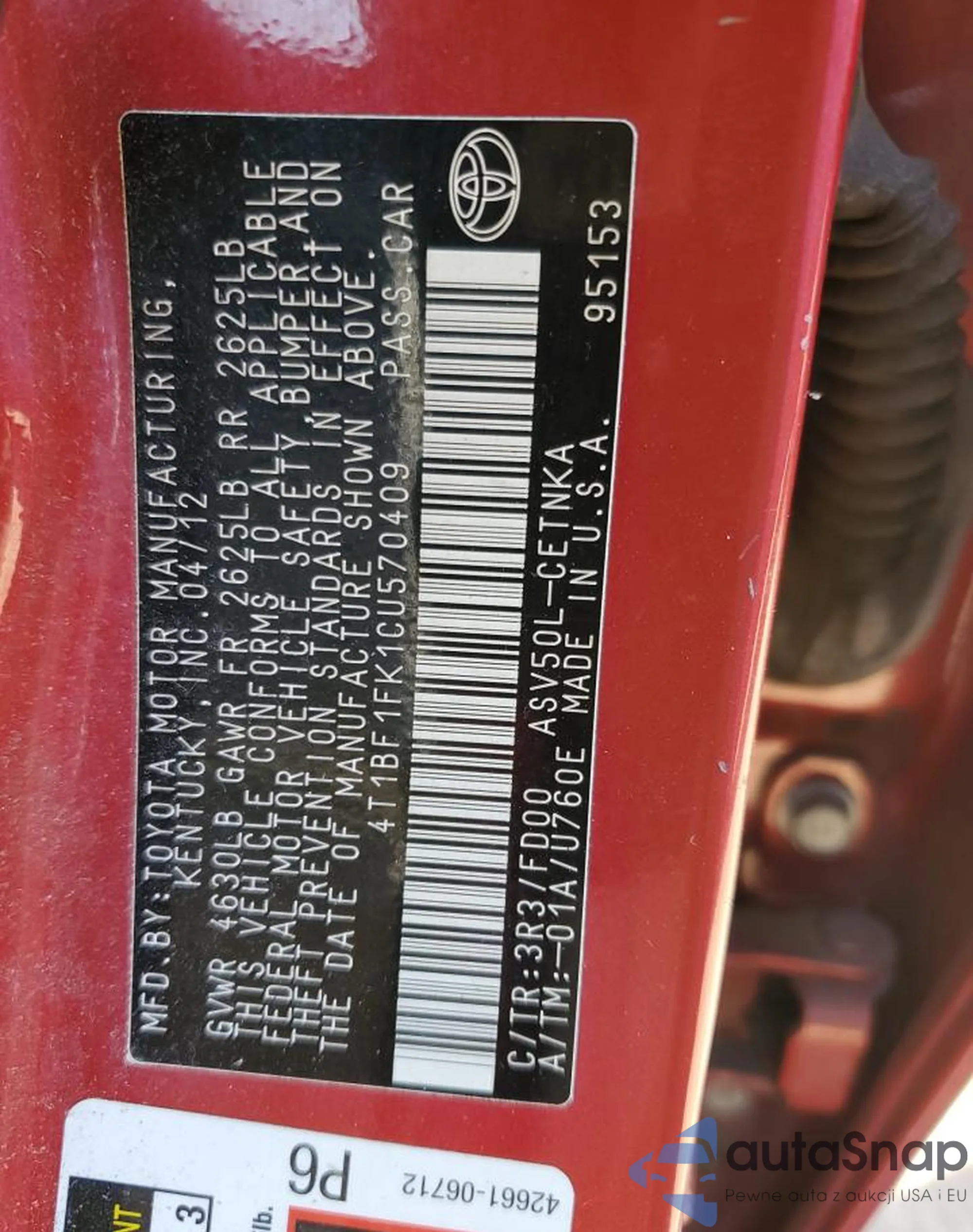 VIN: 4T1BF1FK1CU570409