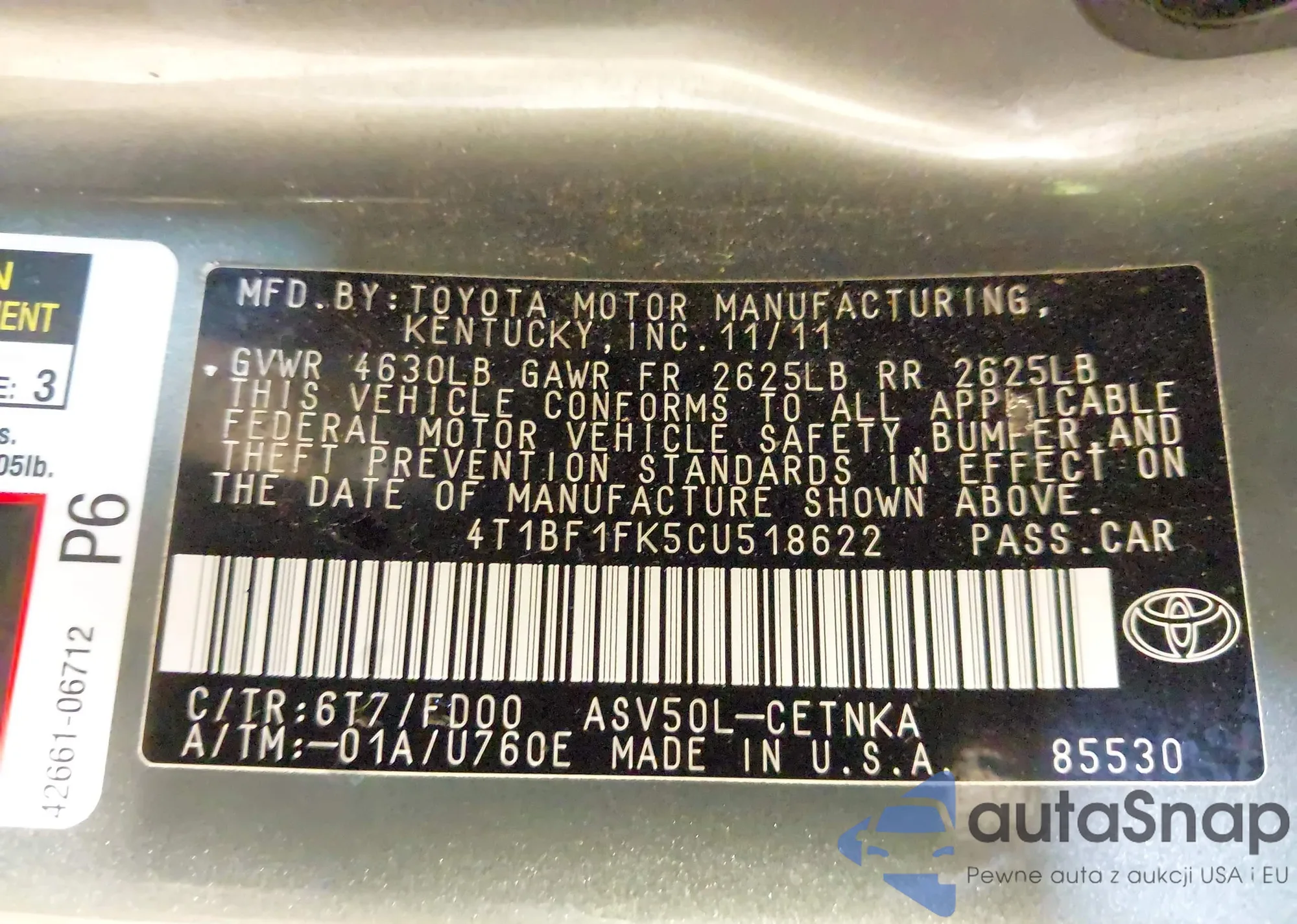 VIN: 4T1BF1FK5CU518622
