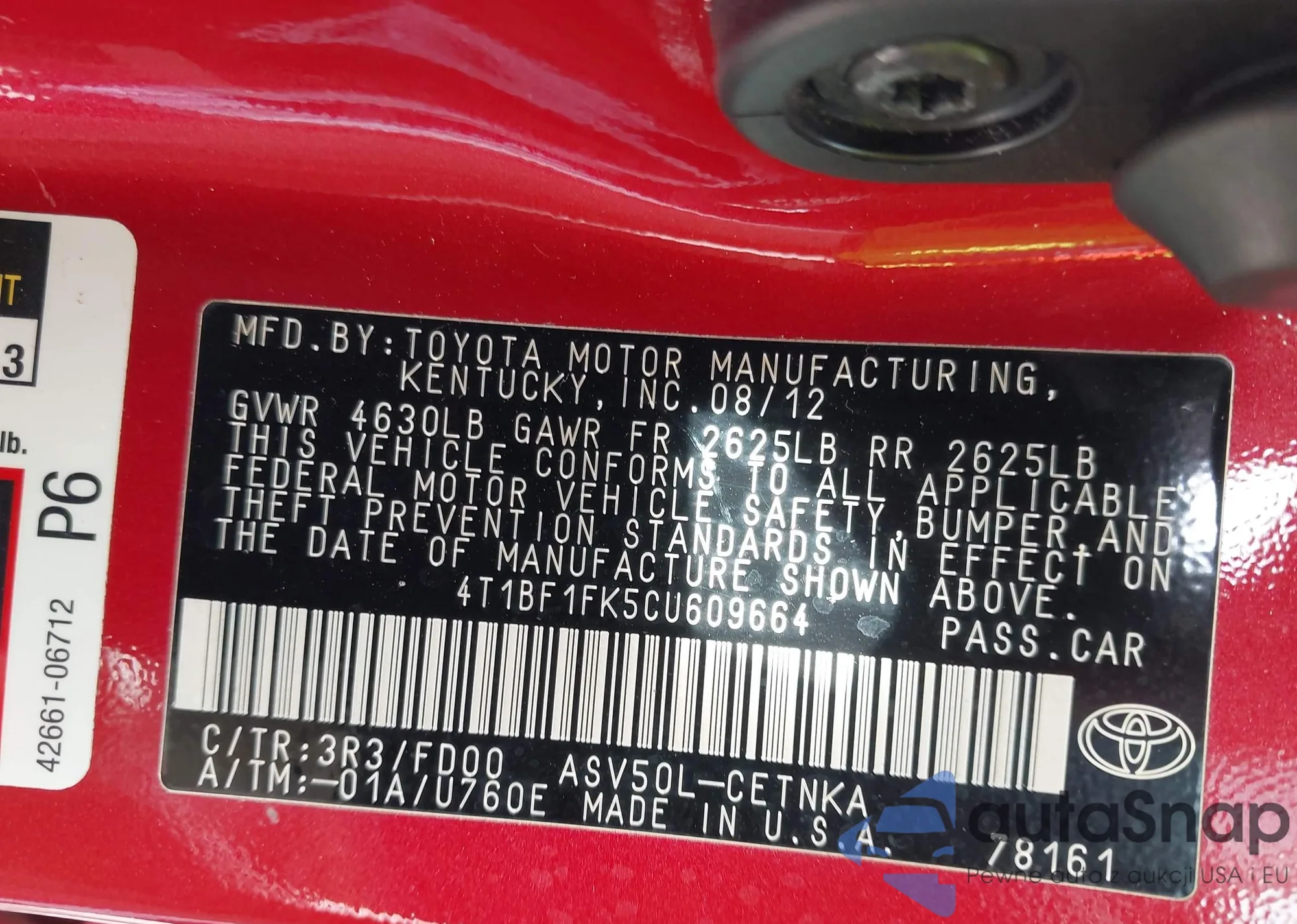 VIN: 4T1BF1FK5CU609664