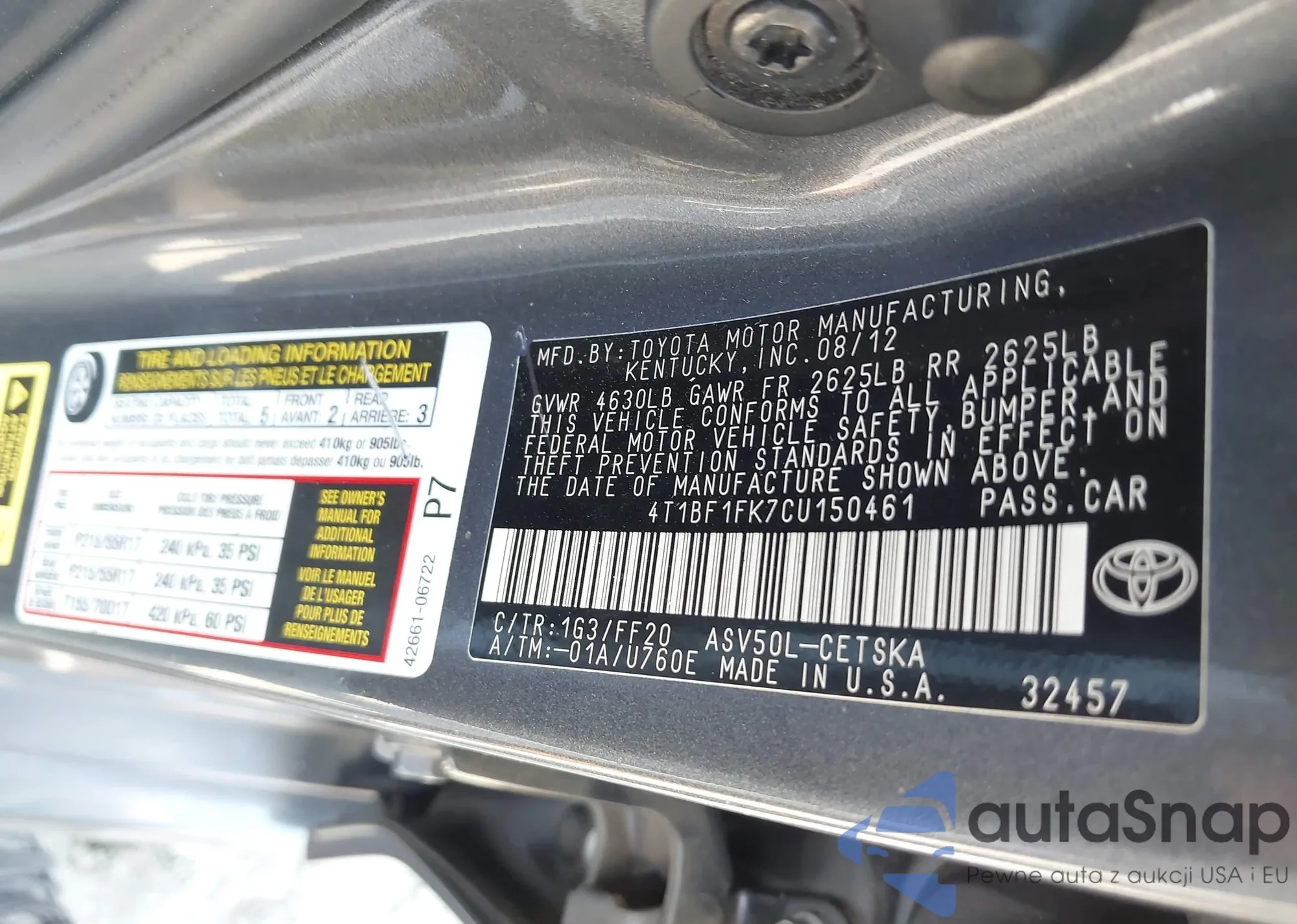 • VIN: 4T1BF1FK7CU150461