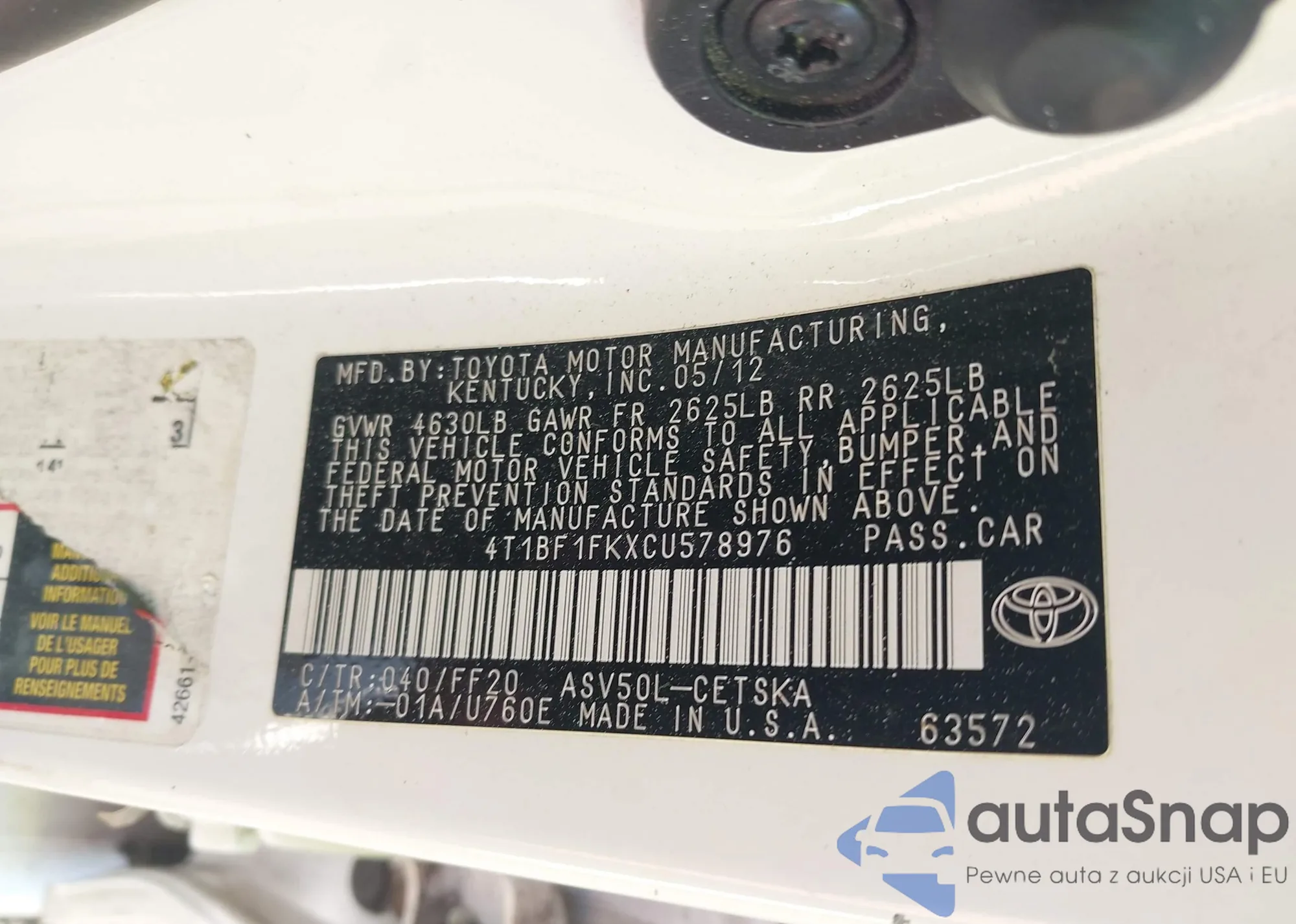 VIN: 4T1BF1FKXCU578976