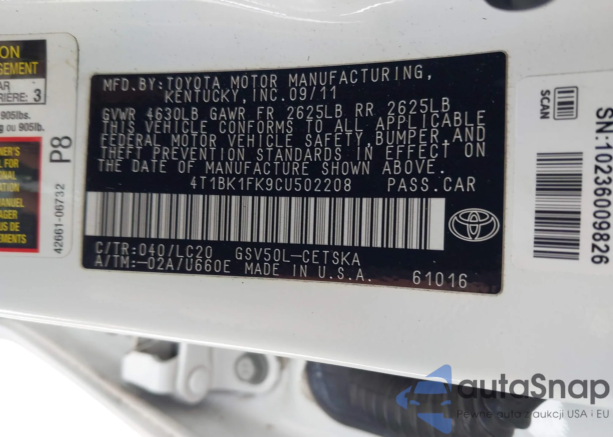 VIN: 4T1BK1FK9CU502208