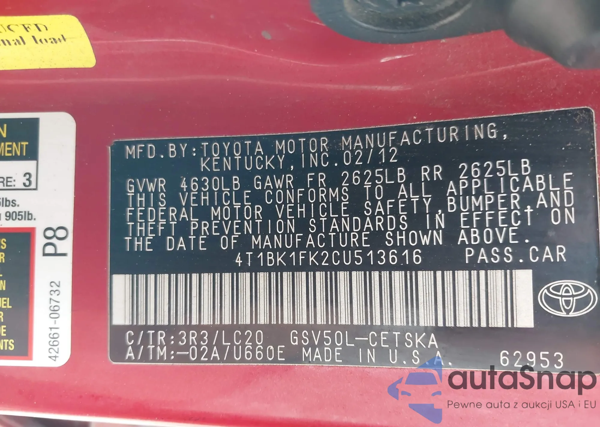VIN: 4T1BK1FK2CU513616