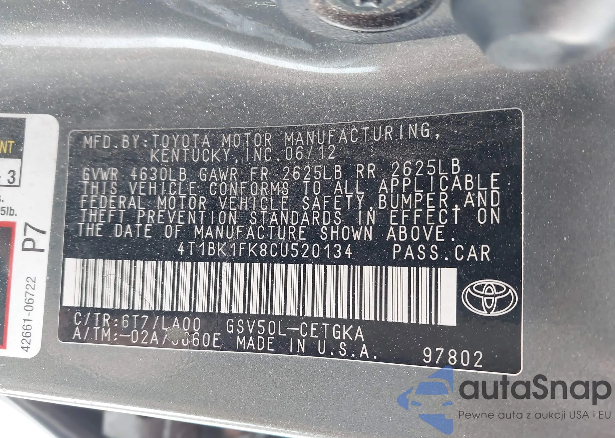 VIN: 4T1BK1FK8CU520134