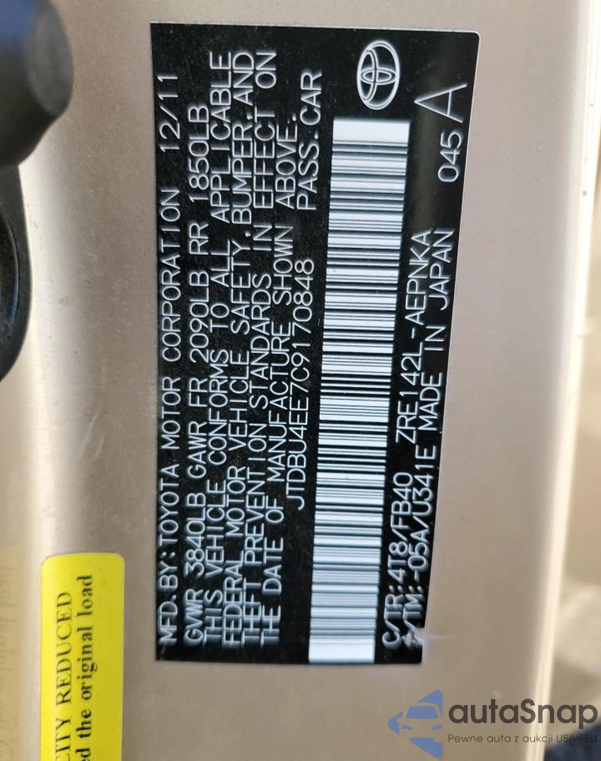 • VIN: JTDBU4EE7C9170848