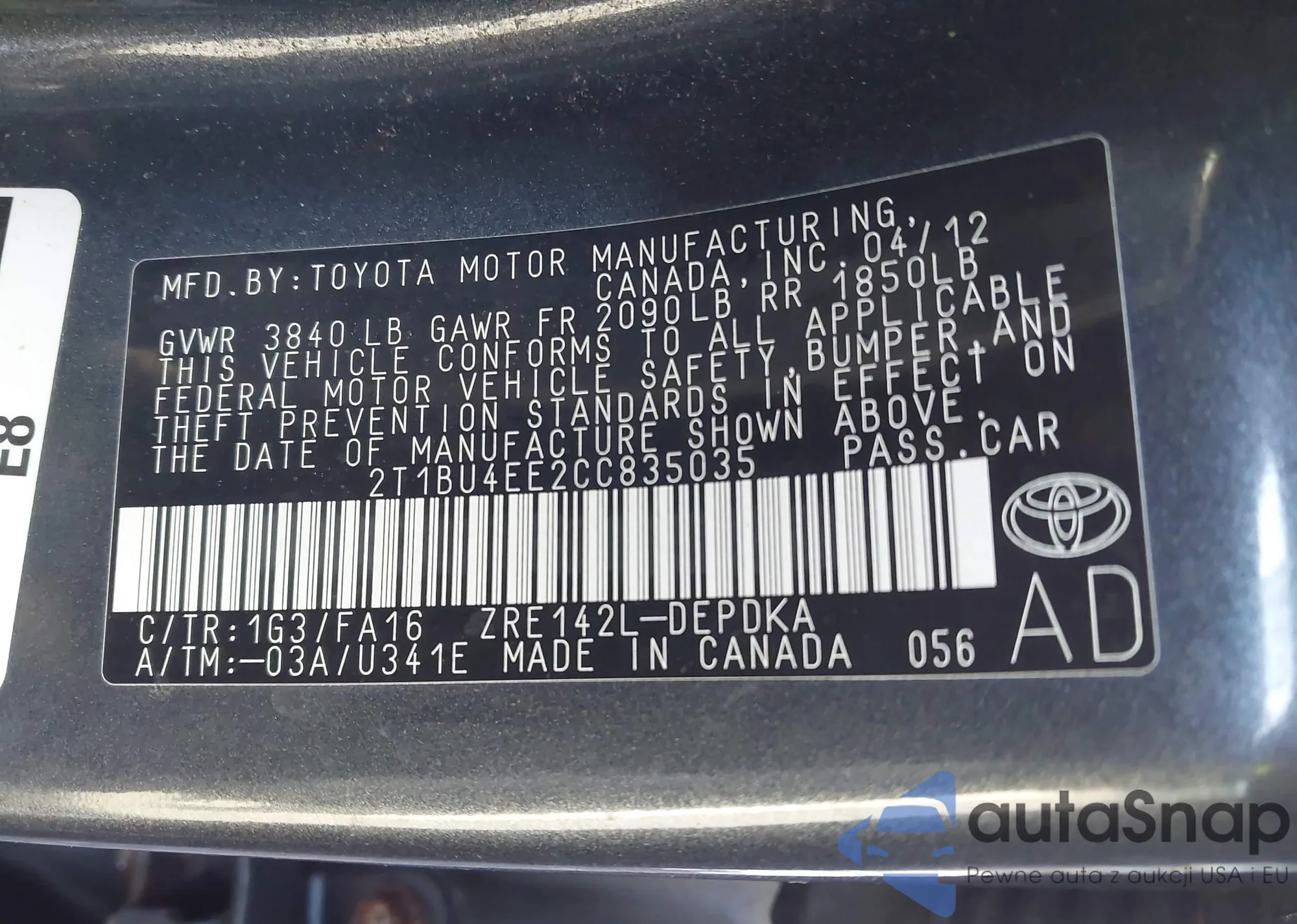 VIN: 2T1BU4EE2CC835035